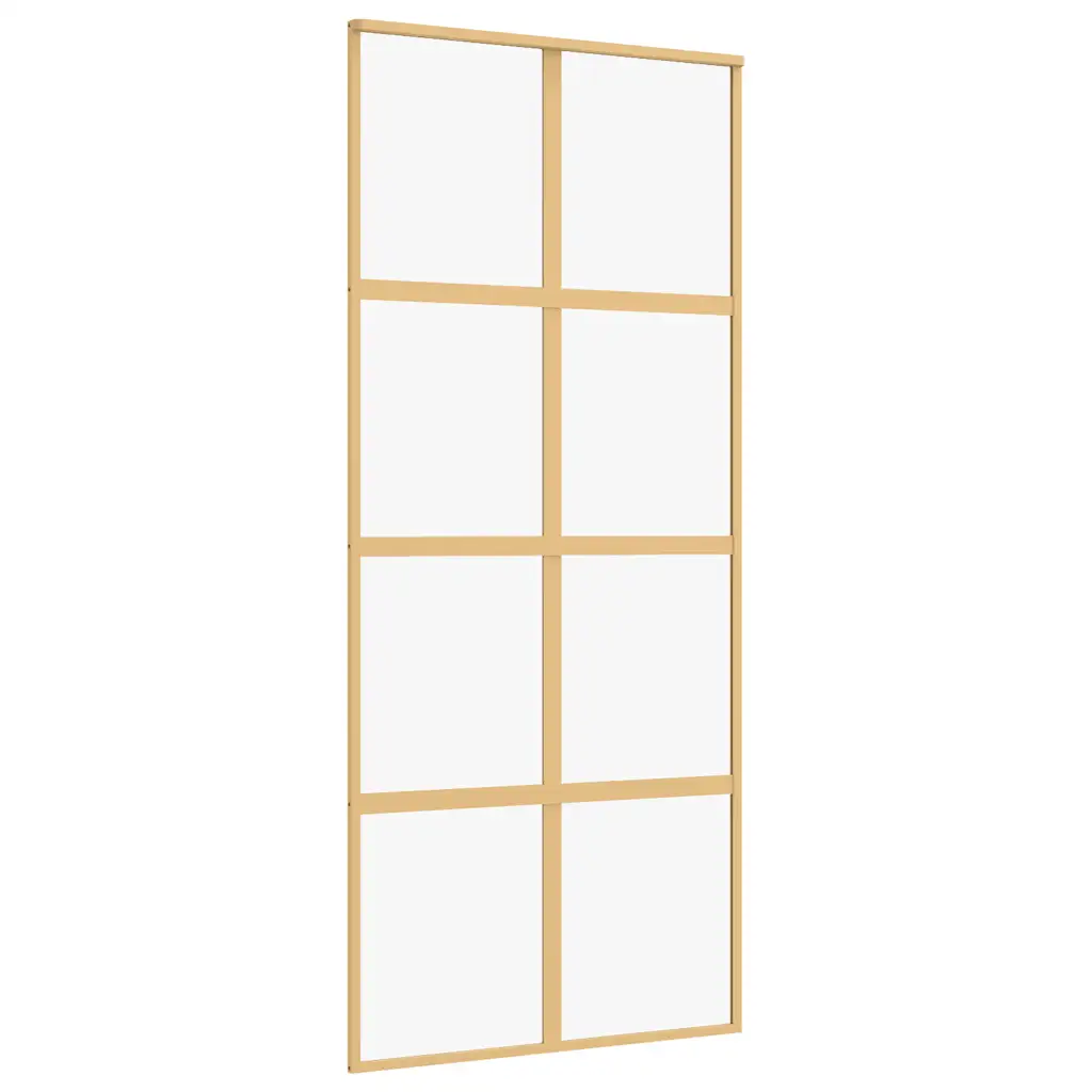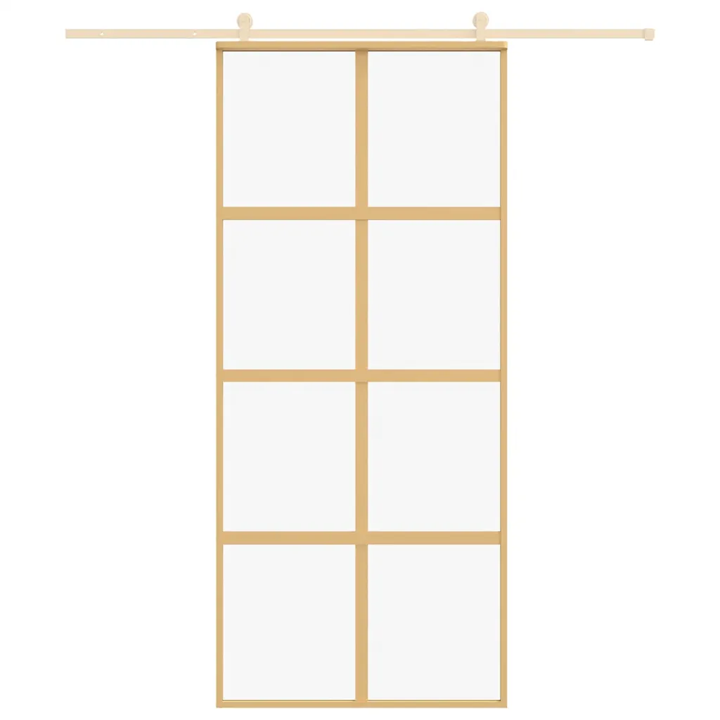 - Liuguks mõõtudega 90 x 205 cm, läbipaistva ESG-klaasi ja kuldse alumiiniumraamiga