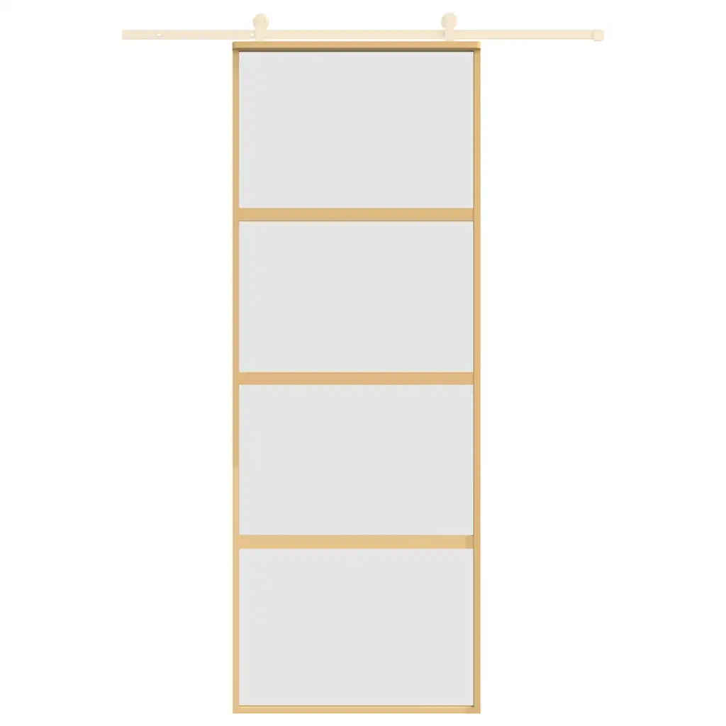 - Liuguks mõõtmetega 76 x 205 cm, matt ESG-klaasist ja kuldse alumiiniumraamiga