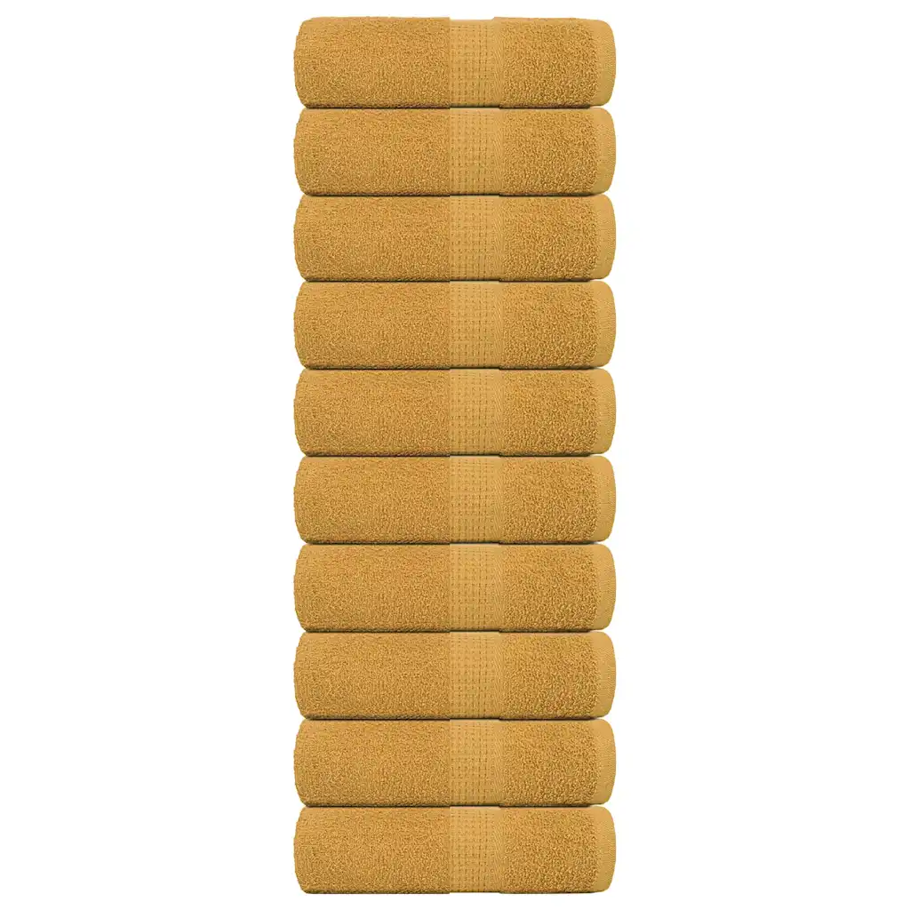 FROGN pesurätikute komplekt sisaldab 10 kuldset väikest rätikut, mis sobivad hästi igapäevaseks näo, käte ja keha puhastamiseks. Rätikud on valmistatud 100% puuvillast, nende pindtihedus on 360 g/m², mis tagab meeldiva pehmuse ja hea imavuse nii kodus, spordiklubis kui ka reisil.