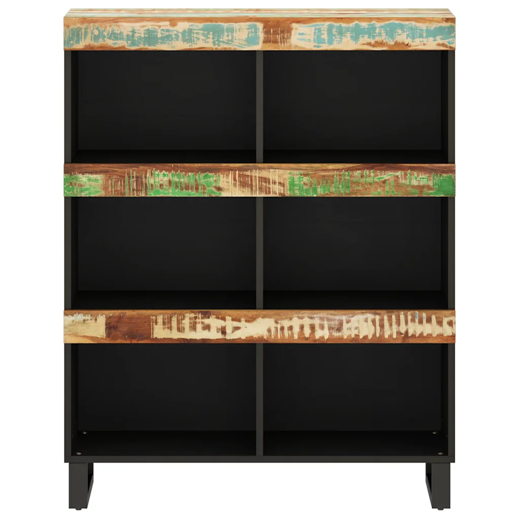 See mitmevärvilise viimistlusega taastatud puidust külgkapp loob interjööri tööstusliku ilme ja aitab hoida igapäevased esemed korrastatult. Tugev rauast raam ja avarad riiulid sobivad raamatute, dokumentide ja dekoratiivsete esemete hoiustamiseks.