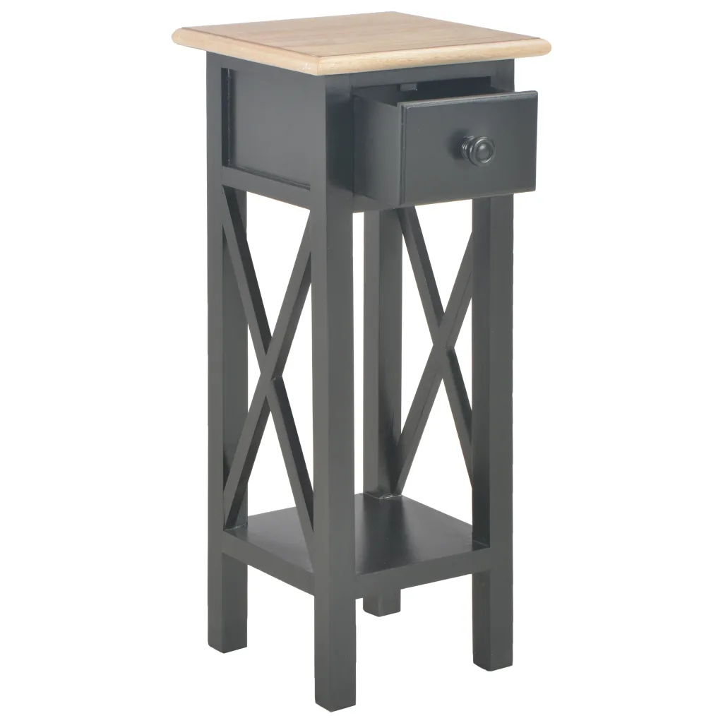 See kompaktne külglaud sahtliga on mugav lahendus, kui vajad lisapinda telefoni, lillepottide või väikeste dekoratsioonide jaoks. Pruun ülaplaat ja must raam loovad tagasihoidliku kontrasti, mis sobitub erinevate sisustusstiilidega. Tänu väikesele põrandapinnale leiab laud koha ka kitsamas koridoris või elutoa nurgas.