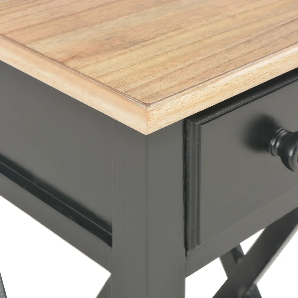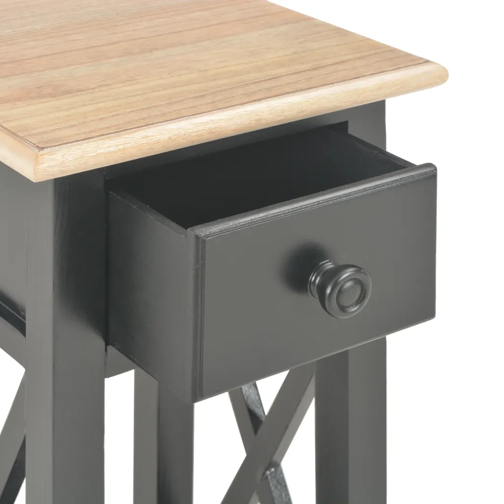 Kui otsid väikest, kuid funktsionaalset lauda, mis mahub ka piiratud ruumi, on see pruun-must külglaud sobiv valik. Sahtel ja alumine riiul aitavad vähendada pindadel valitsevat segadust, samas kui lihtne disain sobitub kergesti olemasoleva mööbliga.