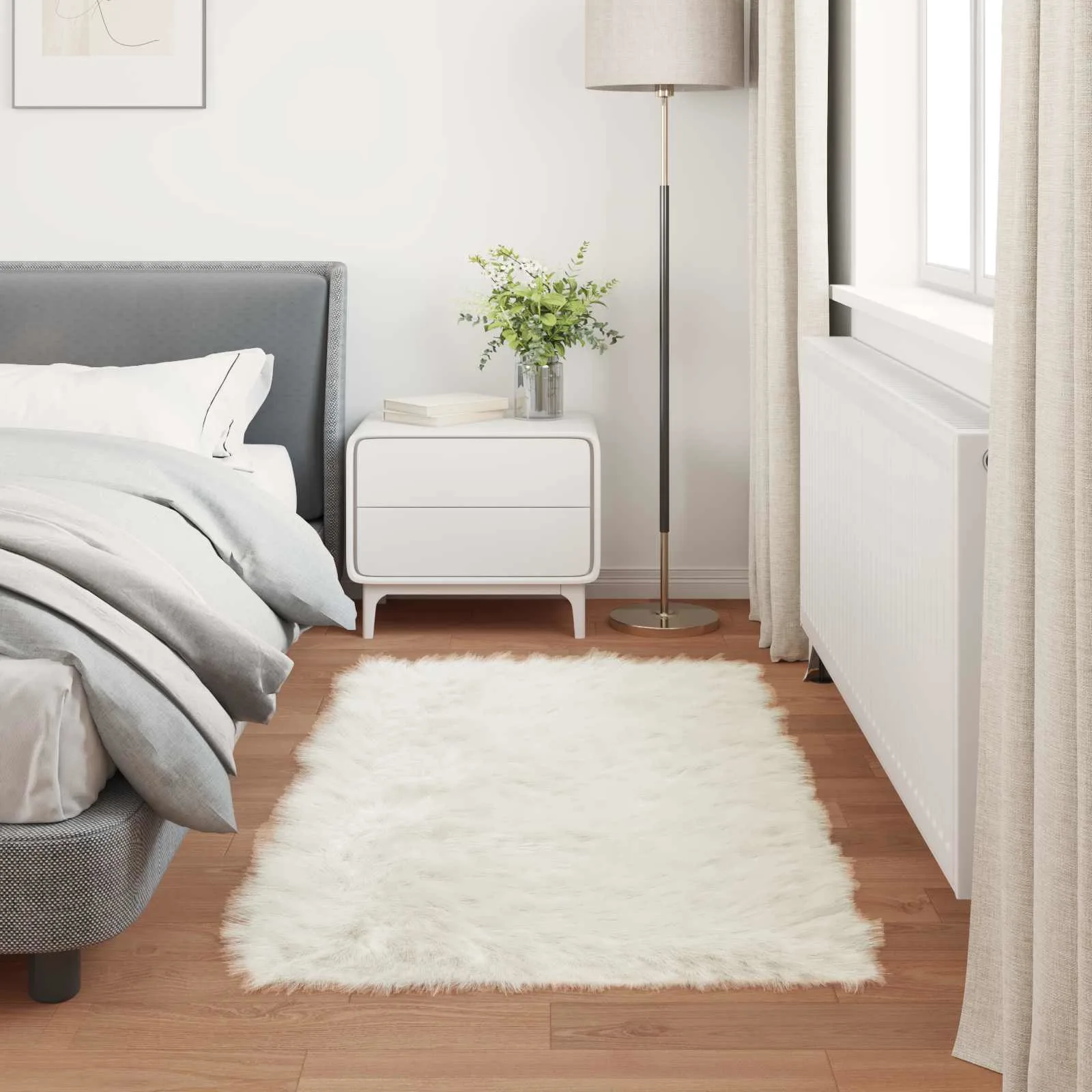 Valge kunstlambanahast vaip Tafalla hubase ja sooja kodu loomiseks