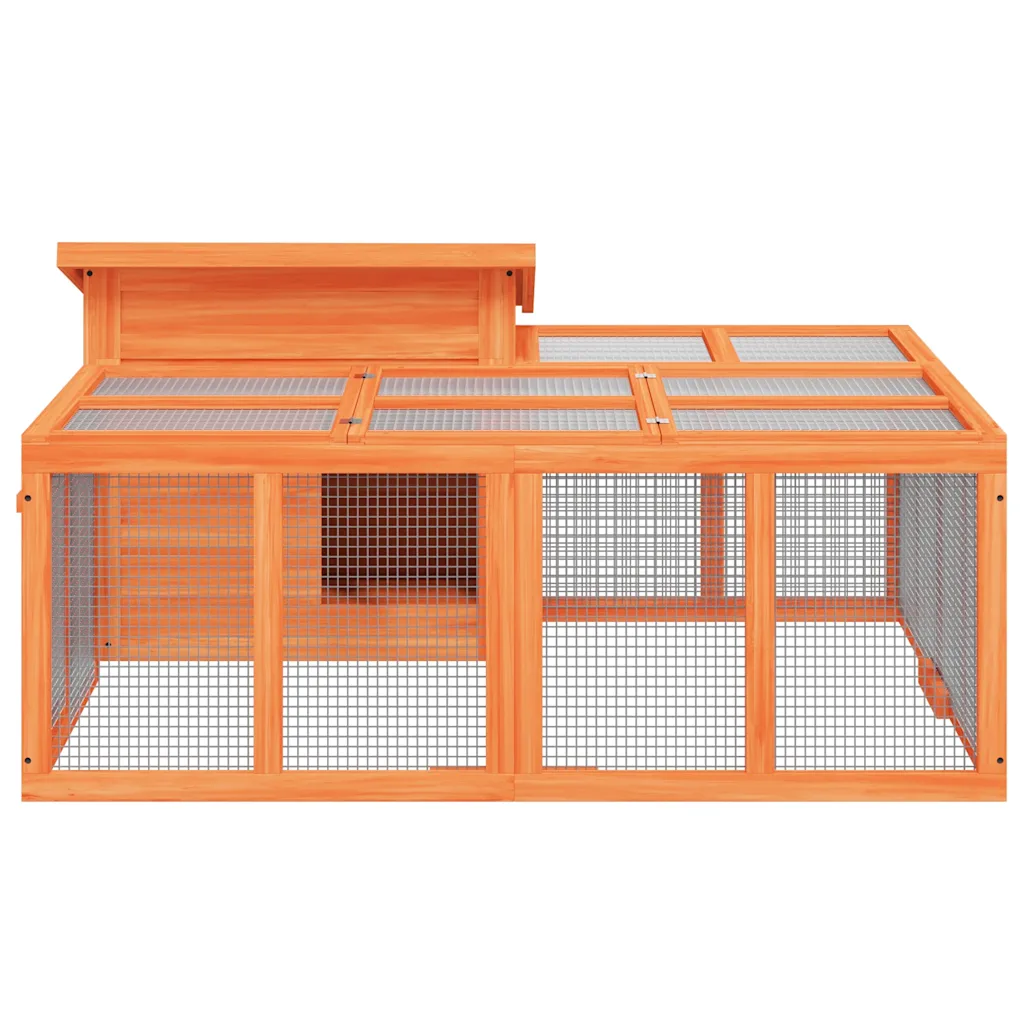 See avar männipuidust küülikupuur pakub turvalist ja mugavat kohta küülikutele, merisigadele, väikestele partidele ja teistele väikeloomadele mängimiseks ja puhkamiseks. Integreeritud magamisala ja jooksuala loovad loomadele loomuliku keskkonna, kus nad saavad varjuda, puhata ja vabalt liikuda. Veekindla katusega õueaedik sobib kasutamiseks aias või muul välialal.
