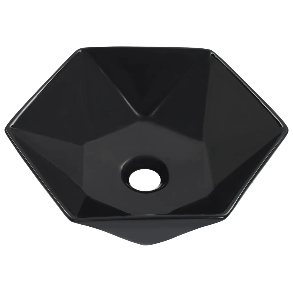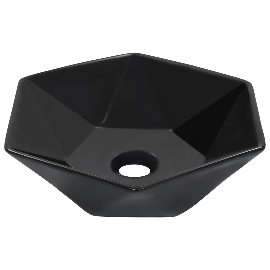 Kui soovid oma vannituppa, pesuruumi või tualettruumi modernset ja ruumisäästlikku valamut, on see must kuusnurkne keraamiline mudel praktiline valik. Kombineeri see sobiva kraani ja äravoolutarvikutega ning loo ühtne, selge joonega sisekujundus, mis püsib ajas stiilne.
