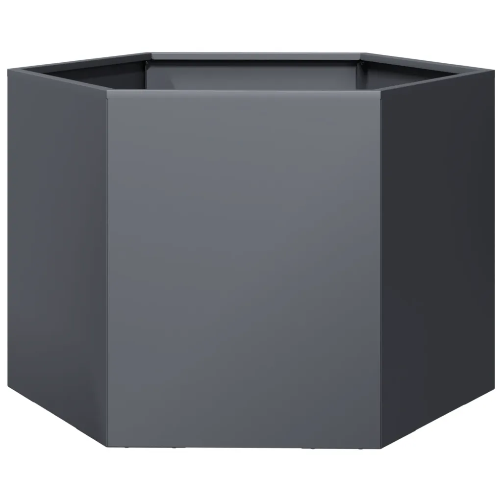 Kui otsite lahendust, mis ühendab korralikult piiritletud istutusala ja hea drenaaži, on see kuusnurkne terasest peenrakast praktiline valik. Vastupidav materjal, avatud põhi ja ajatu antratsiithall toon sobivad erinevatesse aedadesse ning teevad taimede kasvatamise ja ala korrashoiu lihtsamaks.
