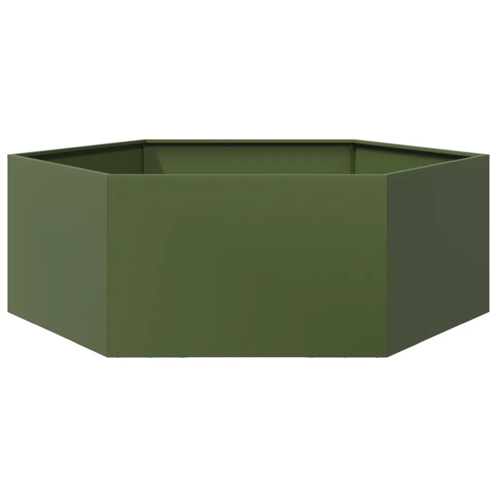 See oliiviroheline kuusnurkne aia peenrakast sobib hästi erinevate lillede, köögiviljade ja ürtide kasvatamiseks ning aitab aeda visuaalselt korrastada. Terasest konstruktsioon talub välistingimusi, samas kui avatud põhi tagab tõhusa drenaaži ja vähendab juuremädaniku ohtu. Tänu kõrgendatud disainile saate paremini kontrollida mulla kvaliteeti ja mullasegu, et vastata taimede vajadustele.