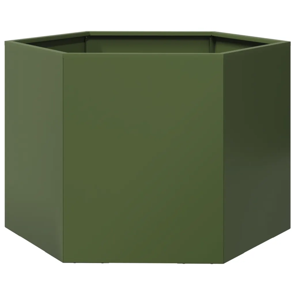 See oliiviroheline kuusnurkne aiataimekast on hea valik, kui soovite aias luua selgepiirilise ja vastupidava peenra väiksemas või suuremas õuealal. Tugev teras, avatud põhi ja kõrgendatud ehitus toetavad tervet taimede kasvu ning aitavad hoida aia korrastatud ja hooldatava.