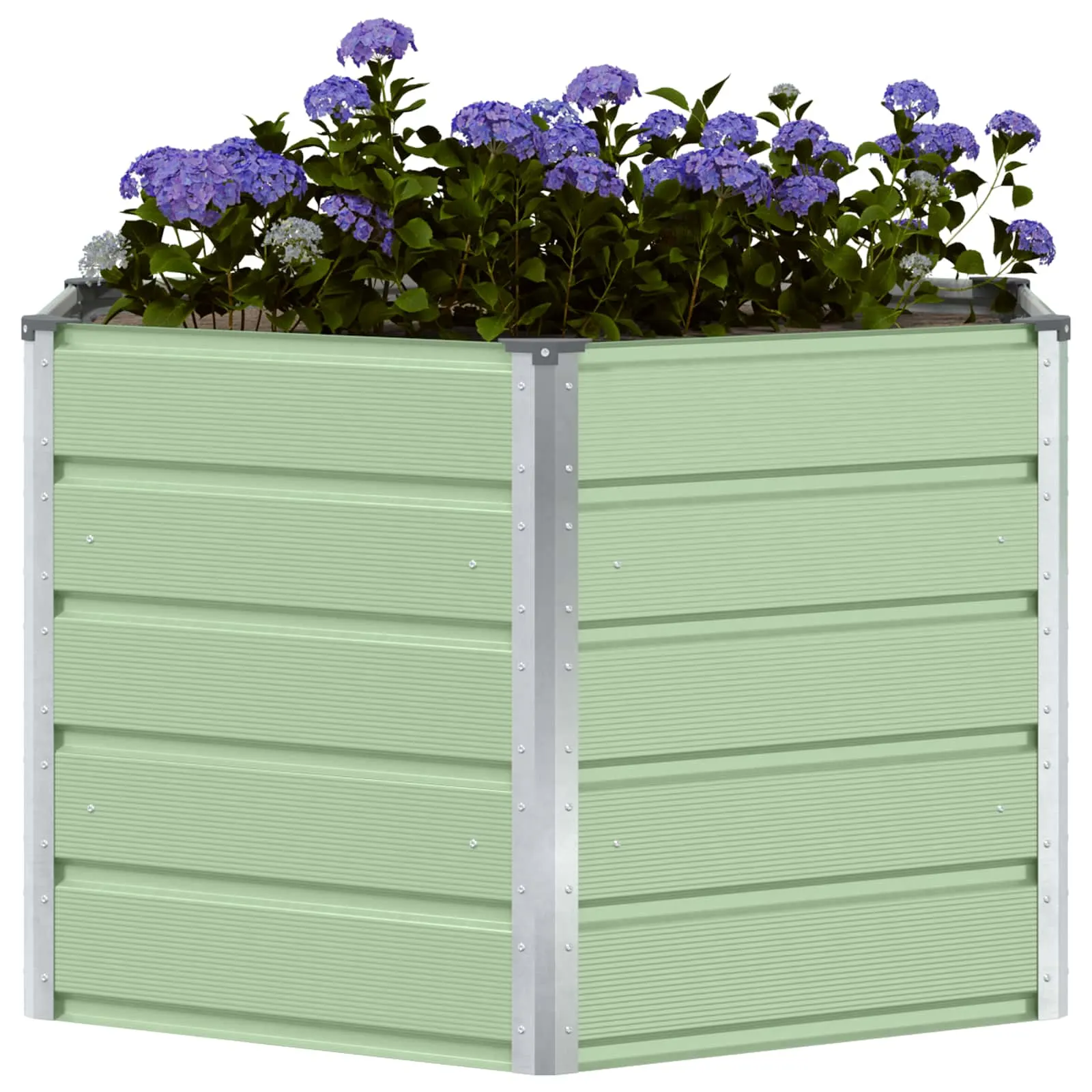 See pastellroheline terasest taimekast aitab luua selge ja korrastatud kasvuala aias või terrassil. Kuusnurkne kuju ja 129 x 129 x 75 cm mõõtmed pakuvad rohkelt ruumi lilledele ja teistele taimedele, samal ajal kui moodne välimus sobitub erinevate väliruumide stiiliga.