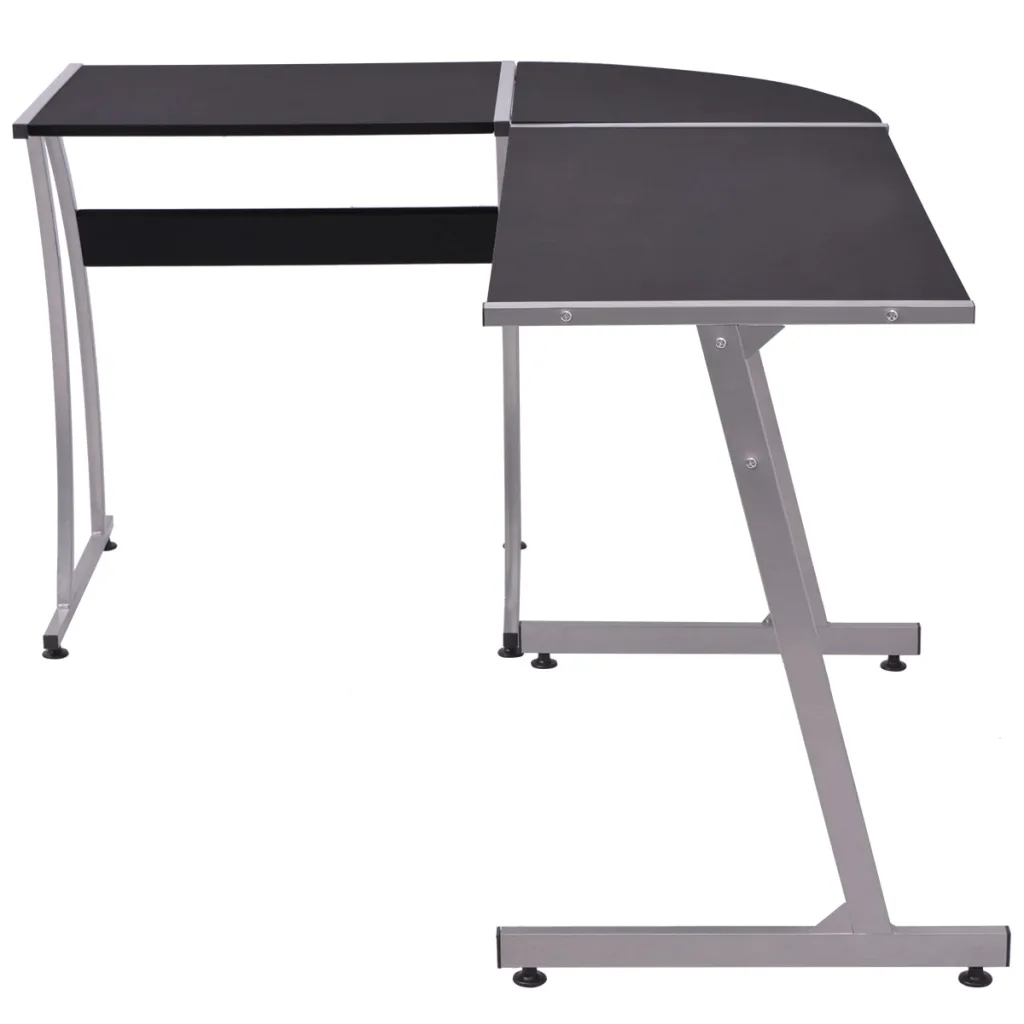 See L-kujuline nurgatöölaud on praktiline lahendus kontorisse või õpperuumi, aidates ruumi tõhusalt ära kasutada. Must lauaplaat PVC-kattega tehispuidust ja tugevast metallist raam loovad vastupidava ning stabiilse töökoha. Tänu oma avarale tööpinnale mahutab laud arvuti, sülearvuti, raamatud, kaustad ja muud igapäevased töövahendid.