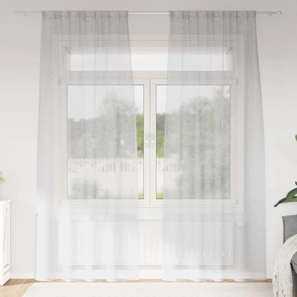 - 2 x helehall voile-kardin, mõõtmetega 225 x 140 cm (pikkus x laius)