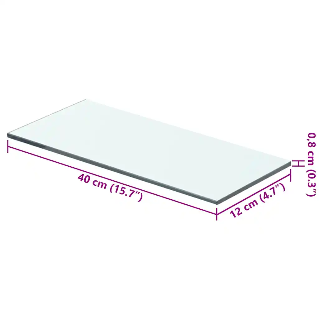 Komplektis on 2 läbipaistvast karastatud klaasist seinariiulit mõõduga 40 x 12 cm ja klaasi paksusega 8 mm. Iga riiuli maksimaalne kandevõime on 15 kg, mis sobib erinevate dekoratiiv- ja tarbeesemete hoiustamiseks.