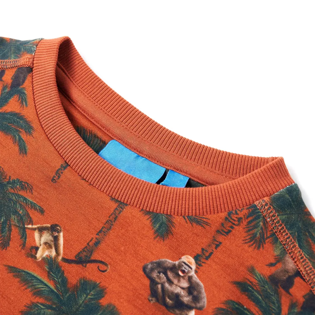 See hele roostevärvi laste dressipluus on loodud igapäevaseks kandmiseks 9–10 aastastele lastele. Pehme puuvillane kangas koos väikese polüestrisisaldusega tagab mugava ja vastupidava tulemuse, samas kui lõbus gorillade, ahvide ja palmipuude muster pakub lapsele džunglihõngulist stiili.