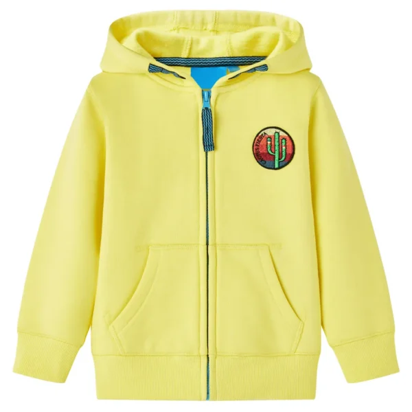 See helekollane laste kapuutsiga dressipluus on loodud mugavaks igapäevaseks kandmiseks lastele vanuses umbes 5–6 aastat. Pehme fliisvooder, praktiline lukuga kinnitus ja mahukad esitaskud hoiavad lapse soojas ning võimaldavad vabalt liikuda nii toas kui õues.
