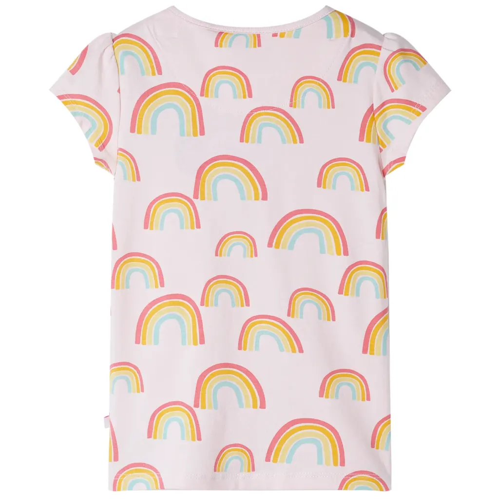 - Lühikeste varrukatega pidžaamapluus heleroosa vikerkaaretrükiga ja ümara kaelusega.