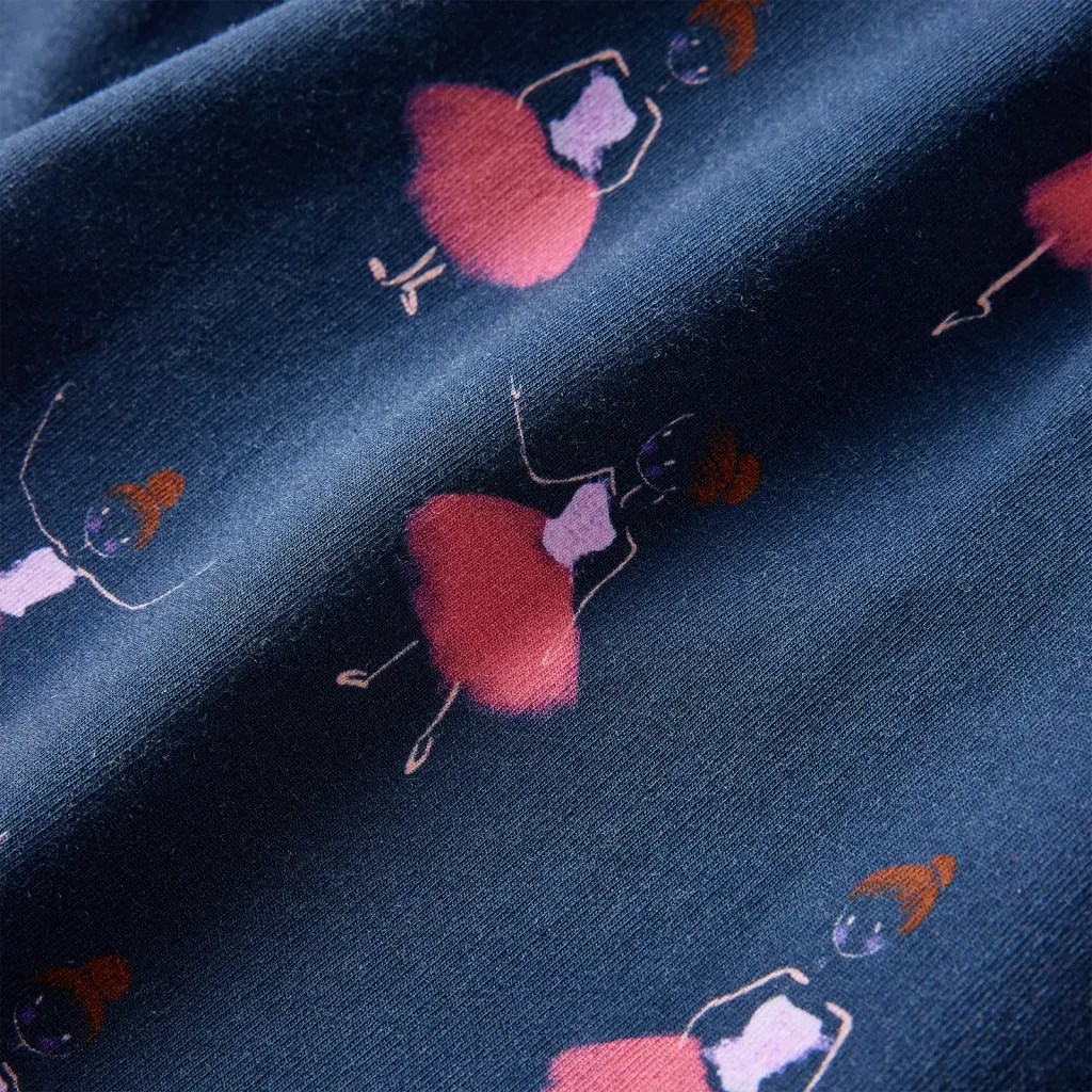 - Tumesinine värvus baleriiniprindiga loob mängulise välimuse, mis sobib eriti hästi tantsu- ja muinasjutuhuvilistele lastele.