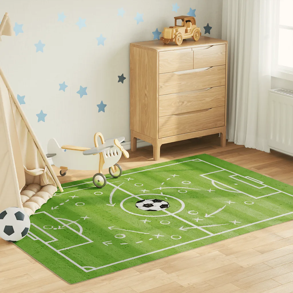 Kui laps armastab jalgpalli, lisab see vaip tuppa mängulist isikupära ja teematruu kujunduse. Pehme pinnaga, libisemisvastase aluse ja müra neelava struktuuriga on see praktiline valik igapäevaseks kasutamiseks. Lihtne hooldus ja vastupidav 100% polüester teevad sellest kauakestva põrandakatte lastetuppa.
