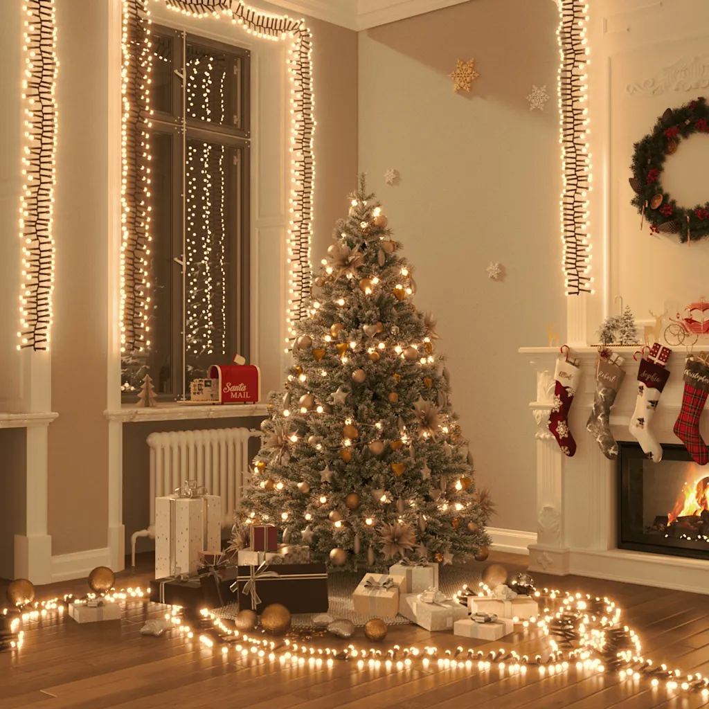 Soe valge LED-valguskett tiheda pühadevalgustuse loomiseks