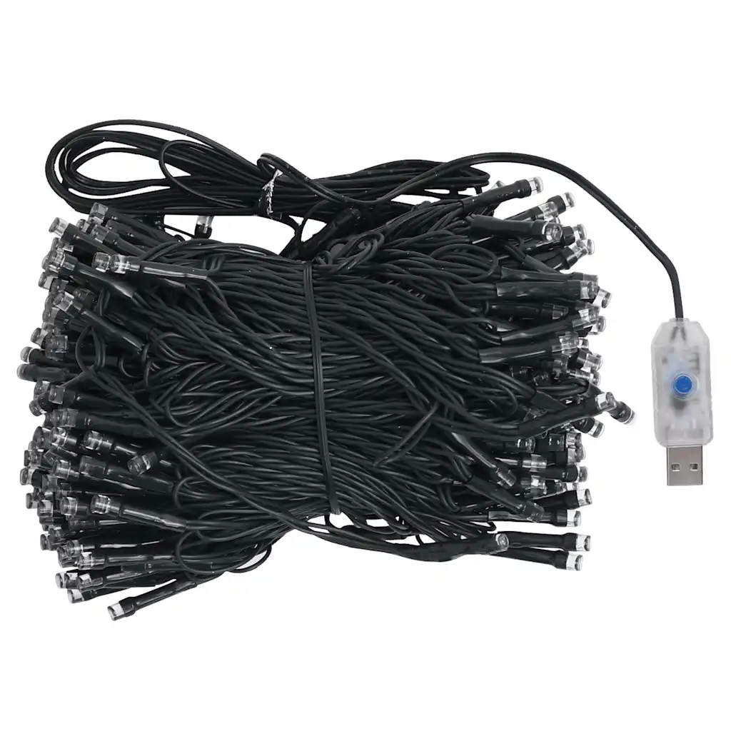 - USB-ühendusega 15 m LED-valguskett töötab DC 5 V pingel ja 5 W võimsusel, sobides kasutamiseks tavaliste USB-toiteallikatega.