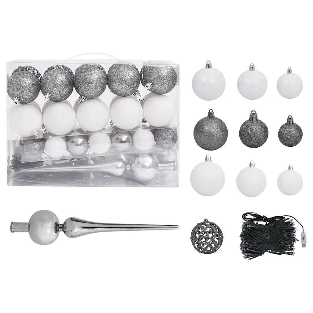 120 cm kõrgune kunstkuusk koos 230 oksatipuga, 150 LED-tule ja valge ning halli tooni läikivate ja sädelevate kuulidega loob kodus ühtse ja piduliku jõuluilme. Vastupidavast PVC-materjalist valmistatud puu on korduvkasutatav ja seda on lihtne hoiustada, mis teeb sellest praktilise alternatiivi päris kuusele.
