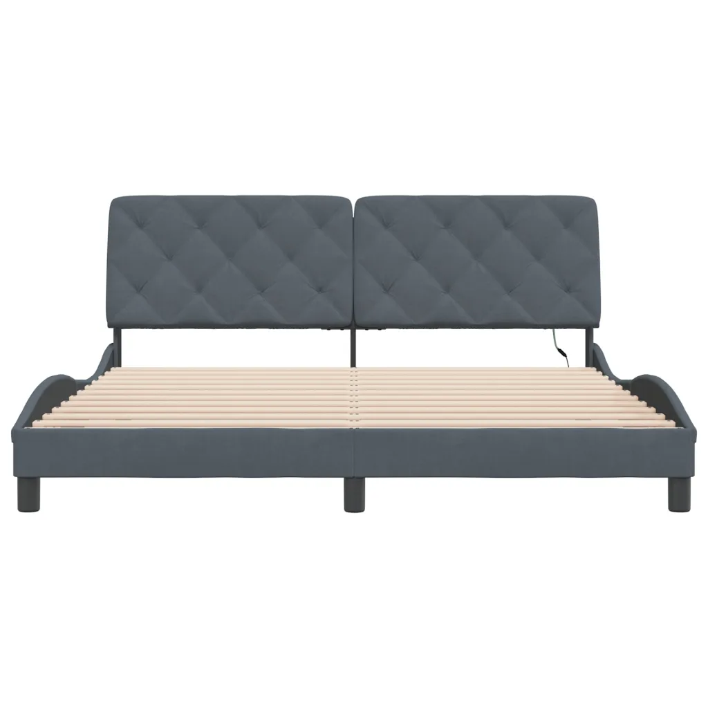 Miks valida LED-valgustusega tumehall sametist voodiraam 180 x 200 cm