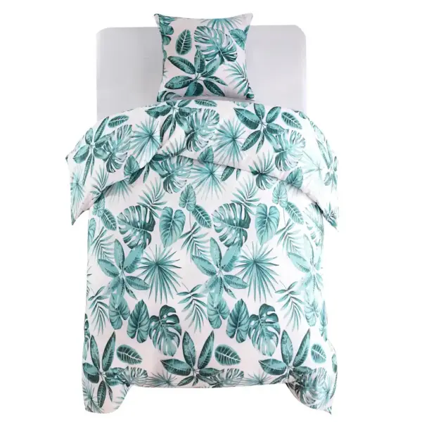 Kui soovid ühendada voodipesus dekoratiivset välimust ja praktilist hooldust, on see roheline-valge lehemustriga komplekt sobiv valik. Polüestrist mikrosatiin pakub pehmet tunnet, lukuga kinnitused lisavad mugavust ning masinpesu kõrgetel temperatuuridel aitab hoida voodipesu puhta ja värskena.