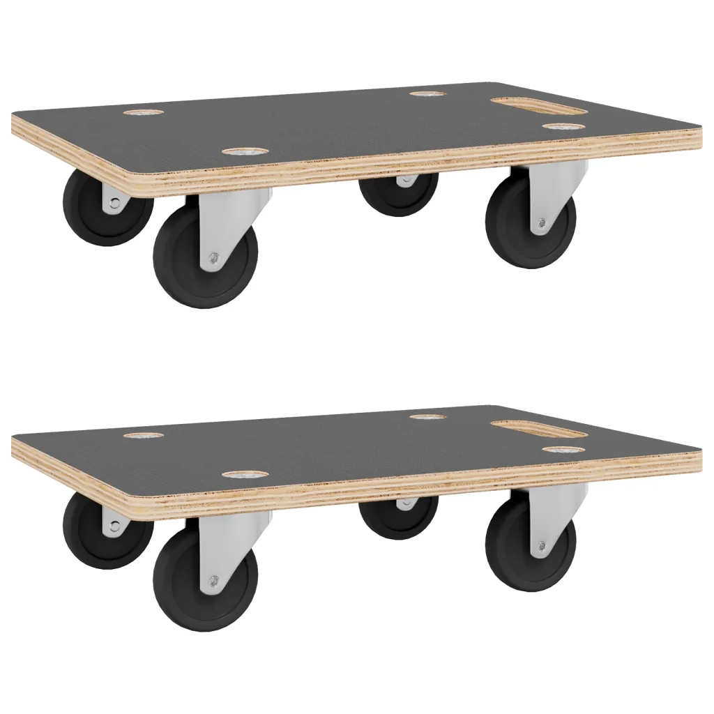 See 2-osaline transpordikäru komplekt aitab liigutada mööblit, seadmeid ja suuremõõtmelisi esemeid kodus või kontoris märksa kergemini. Libisemiskindla pinnaga vineerist platvorm ja neljal rattal alus muudavad raskete koormate transportimise sujuvaks ning aitavad vähendada füüsilist pingutust ja kahjustuste riski.