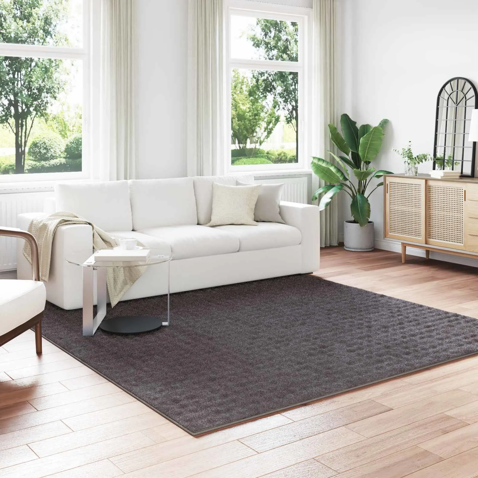 Antratsiitne kandiline vaip Sirolo mõõduga 240 x 240 cm loob pehme ja mugava põrandapinna elutuppa, magamistuppa või esikusse. Vastupidavast polüestrist keskmise karvapikkusega pind summutab samme ja vähendab kaja, samal ajal kui libisemisvastane alus hoiab vaiba kindlalt paigal. Vaip sobib kasutamiseks ainult siseruumides ja on kooskõlas põrandaküttega põrandatega.