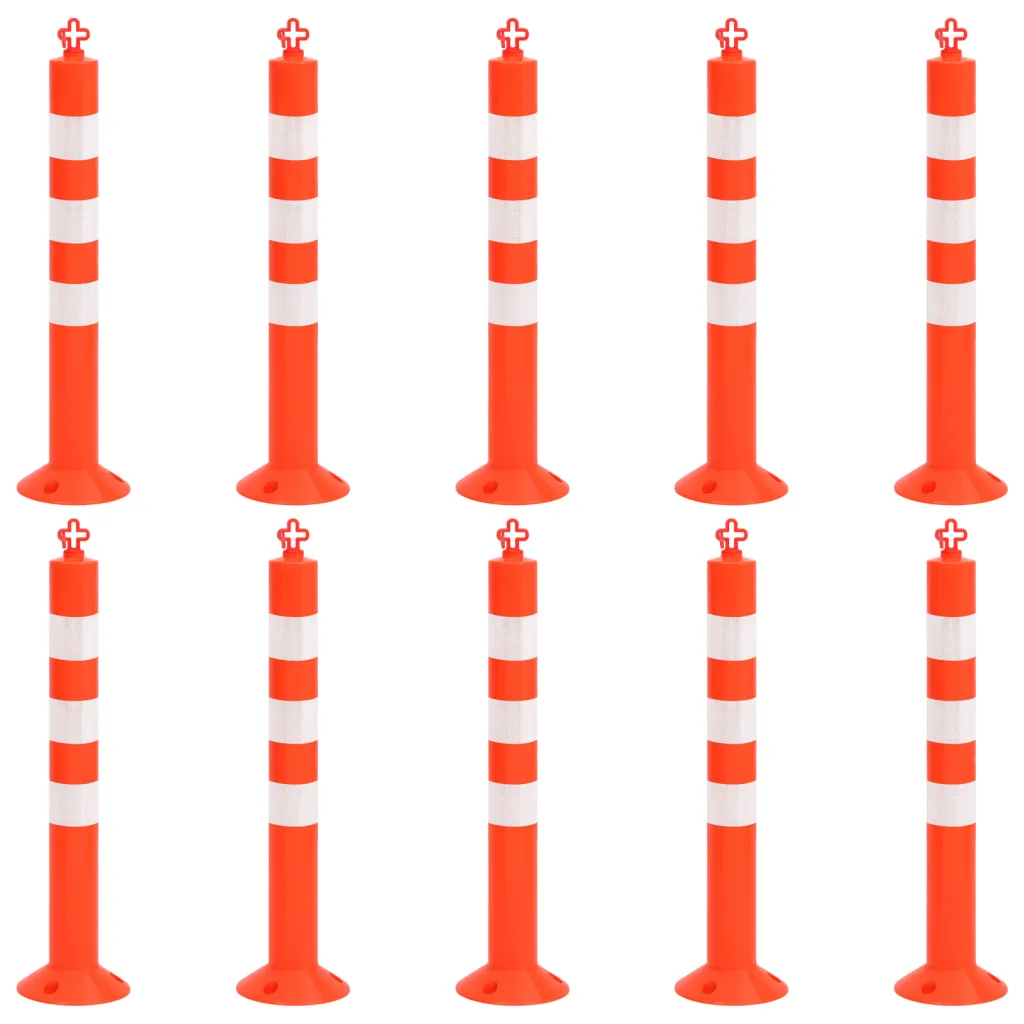 See 10-osaline plastist liikluspostide komplekt ketiga on mõeldud ohtlike kohtade märgistamiseks ja keelualade piiritlemiseks, aidates vähendada liiklusummikuid ja parandada ohutust. Hästinähtav punane-hõbedane värv koos helkurribadega muudab postid kergesti märgatavaks nii päeval kui ka pimedal ajal.