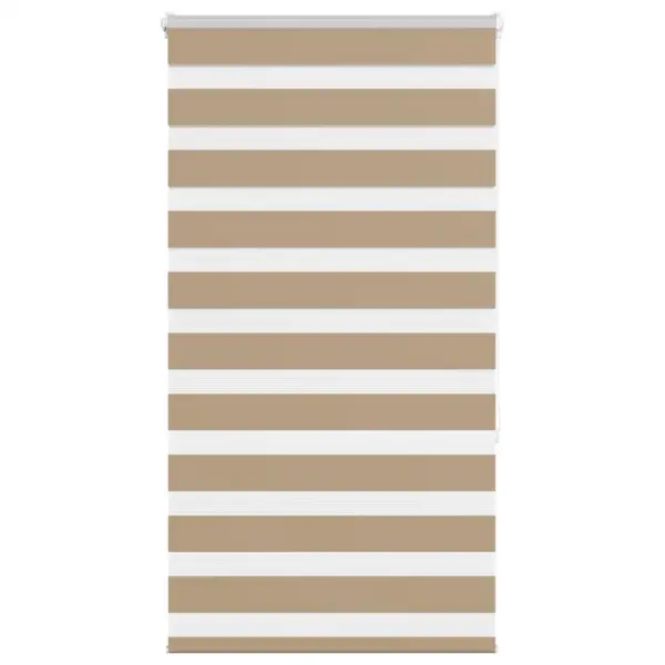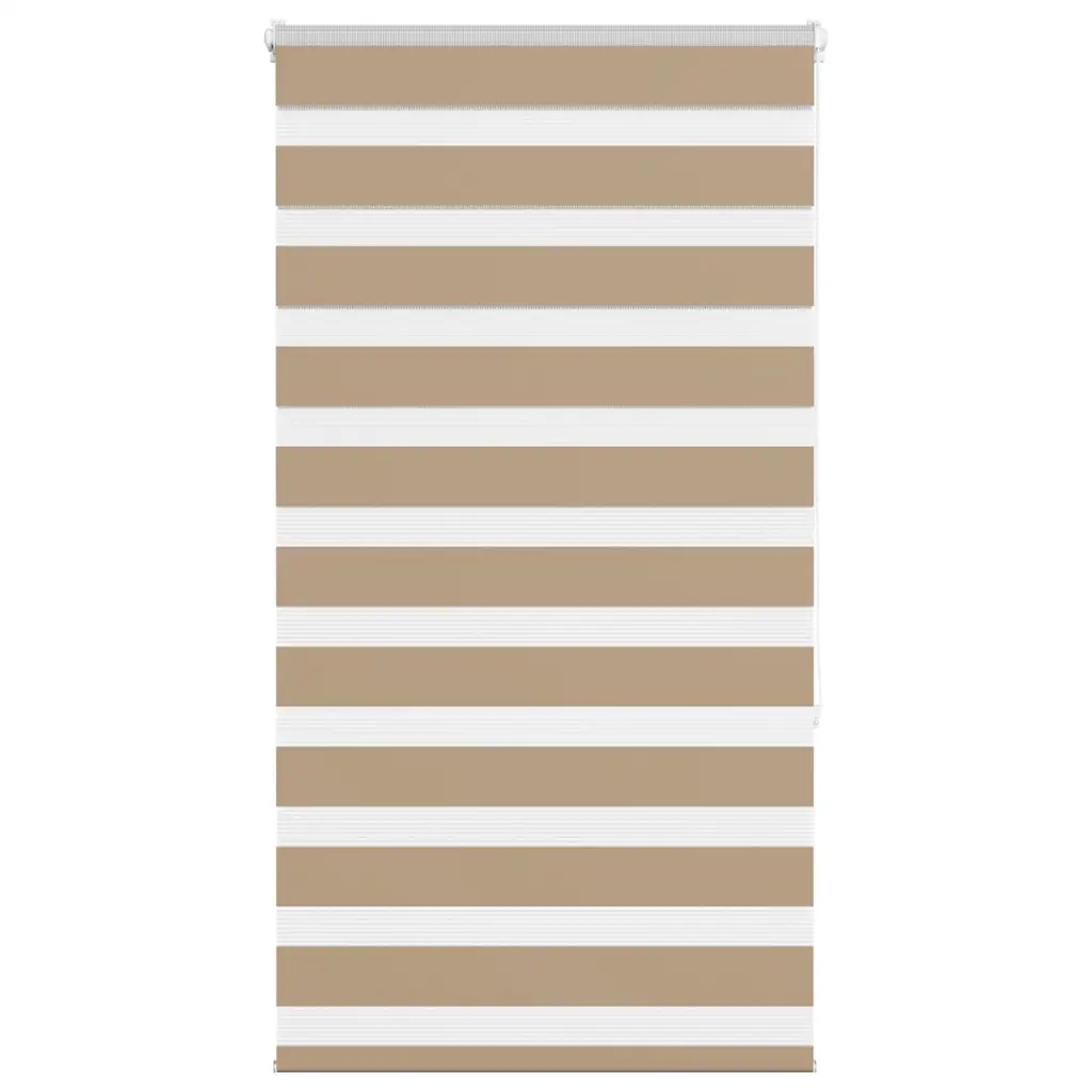 Liivapruun sebra ruloo mõõtmetega 85 x 150 cm ühendab ühe toote sees nii kardina kui ruloo funktsiooni. Kahekihiline triibuline kangas võimaldab sujuvalt vahetada poolläbipaistva ja peaaegu pimendava seadistuse vahel, et tagada ruumis sobiv valgus ja vajalik privaatsus.