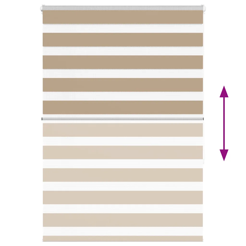 Liivapruun sebraruloo suurusega 110 x 150 cm ühendab dekoratiivse triibulise välimuse ja praktilise valguse juhtimise. Kahekihiline päev ja öö kangas võimaldab ruumis kiiresti vahetada poolläbipaistva valguse ja suurema privaatsuse vahel, sobides elutuppa, magamistuppa või kontorisse.