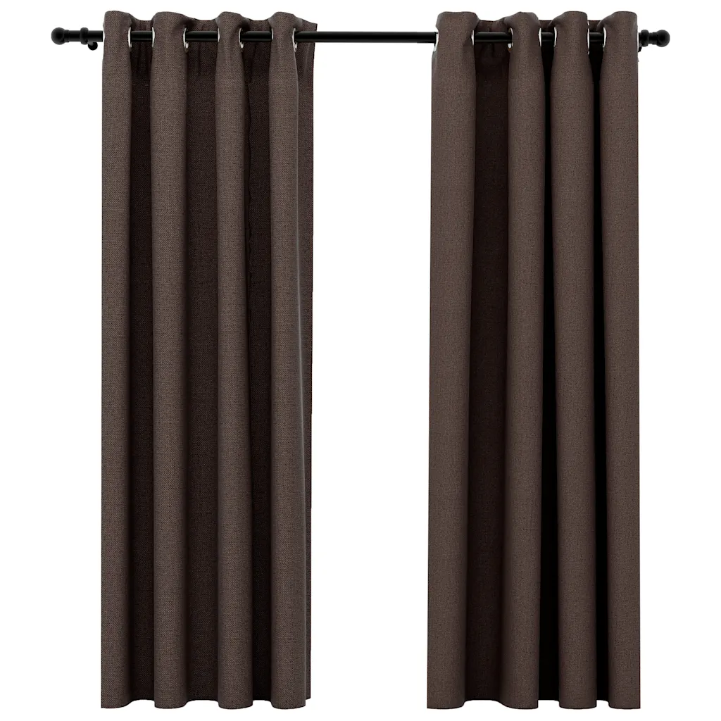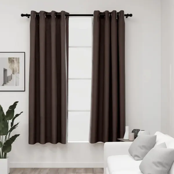 • 2 x pruunikashalli värvi linase välimusega pimendavat kardinat, mõõtudega 140 x 175 cm