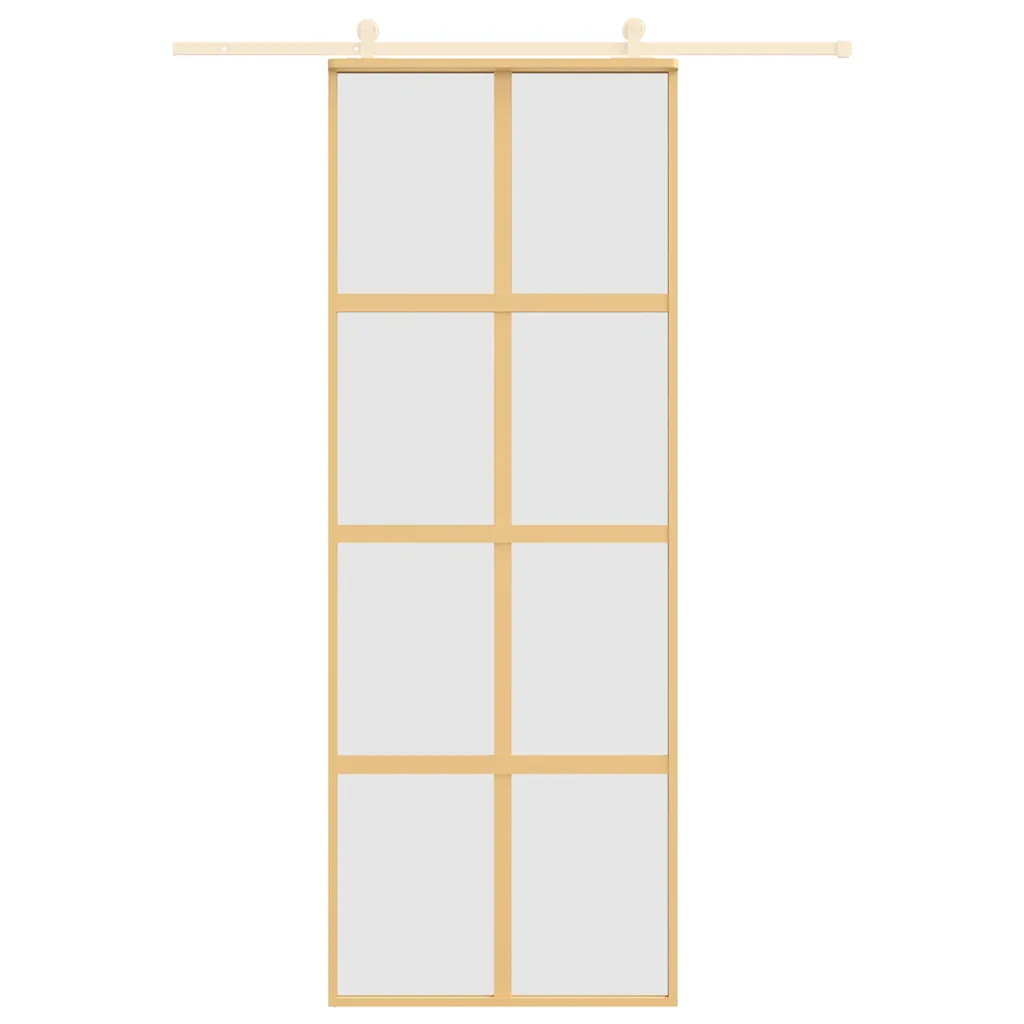• Liuguks mõõtudega 76 x 205 cm, matt ESG-klaasiga ja kuldse alumiiniumraamiga.