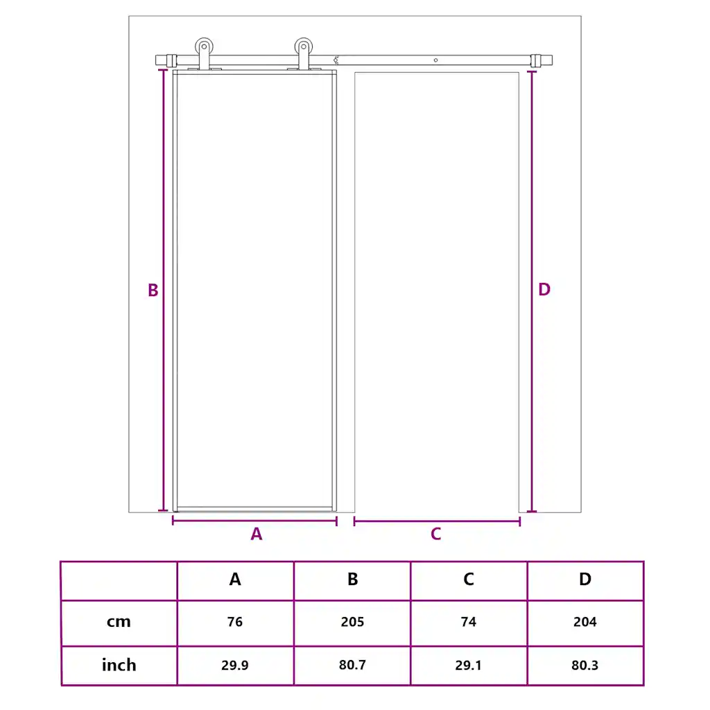 • Praktilised mõõdud 76 x 205 cm sobivad levinud ukseavade katmiseks, ukse paksus on 2 cm ja klaasi paksus 5 mm.
