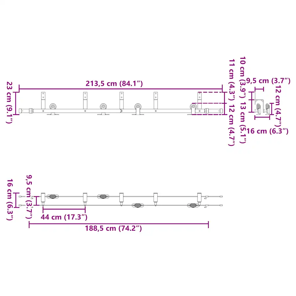 Vali see lükandukse riistvarakomplekt, kui soovid kahekordseid aida- või kappuksi, mis liiguvad iseseisvalt kahel rööbasteel ja säästavad seinaruumi. Tugev mustast pulbervärvitud terasest süsteem koos kõigi vajalike tarvikutega sobib nii uute lükanduste lahenduste loomiseks kui ka olemasolevate uste uuendamiseks.