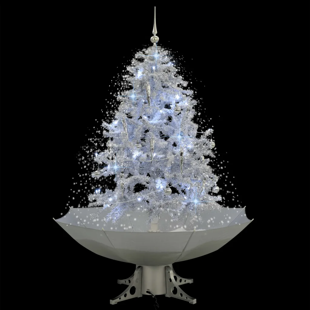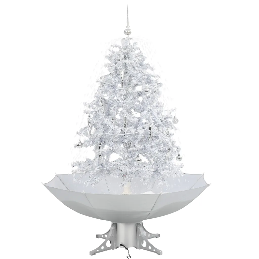 See valge lumesajuga kunstjõulupuu loob koju või kontorisse efektse talvise keskpunkti. Sisseehitatud pump tõstab vihmavarjukujulisest alusest kunstlume üles ja laseb sellel puuokstele tagasi sadada, moodustades pideva lumesaju. Valged LED-tuled, meloodia ja hõbedased kaunistused annavad puule piduliku sära, mida saate nautida kogu jõuluaja ja talve vältel.