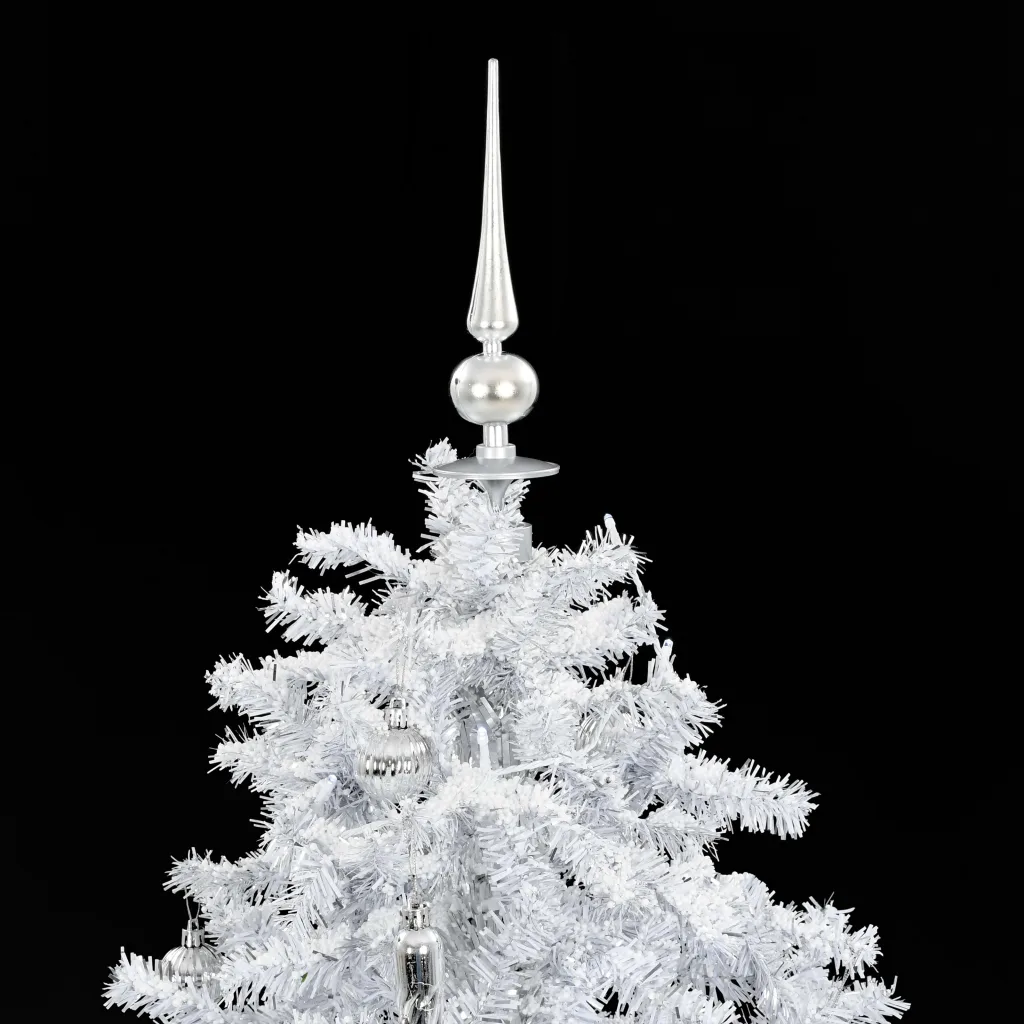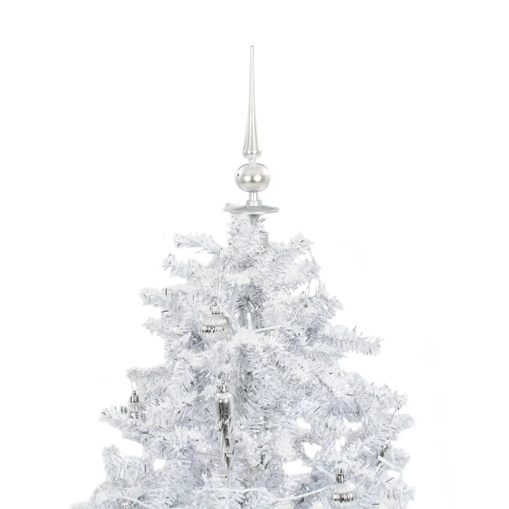 • Valge PVC-kuusk elutruude okstega ja hõbedaste kaunistustega loob modernse talvise ilme