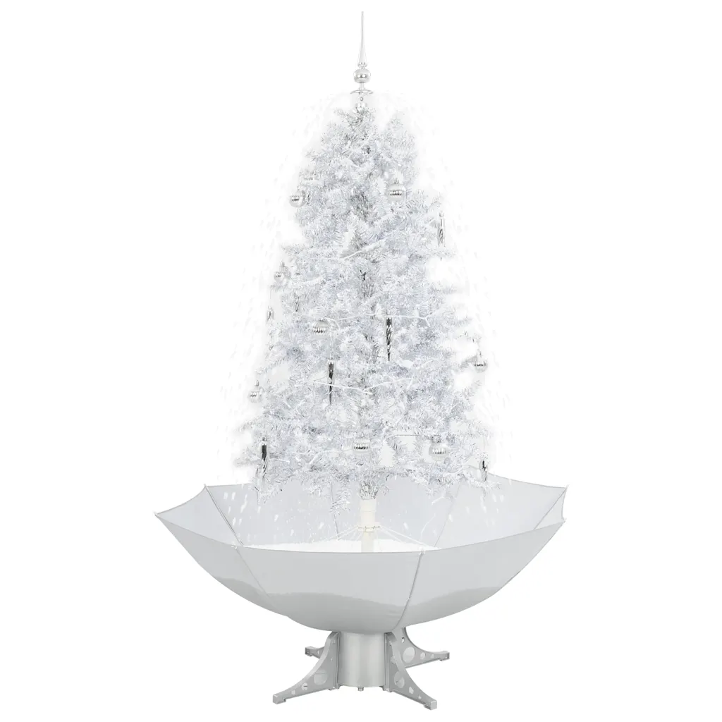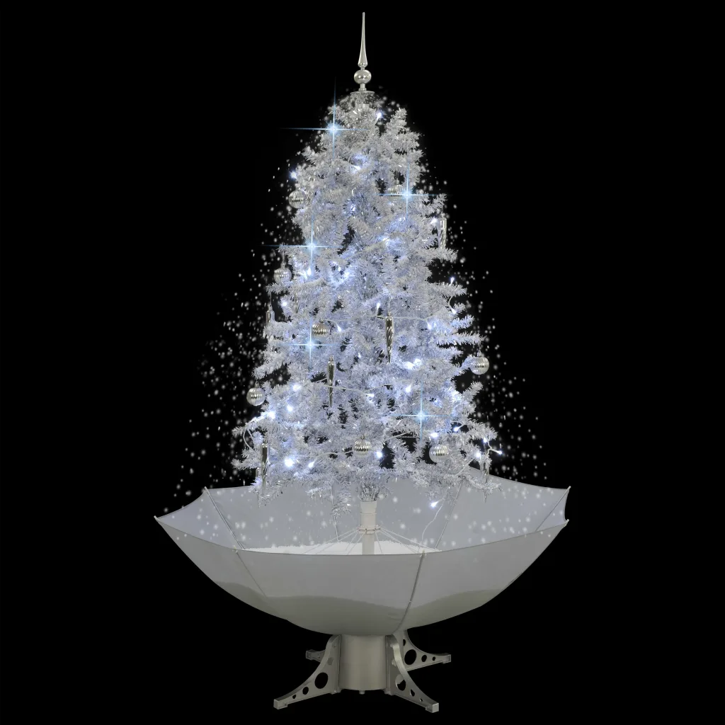 Miks valida lumesajuga valge LED-kunstjõulukuusk vihmavarjualusega?