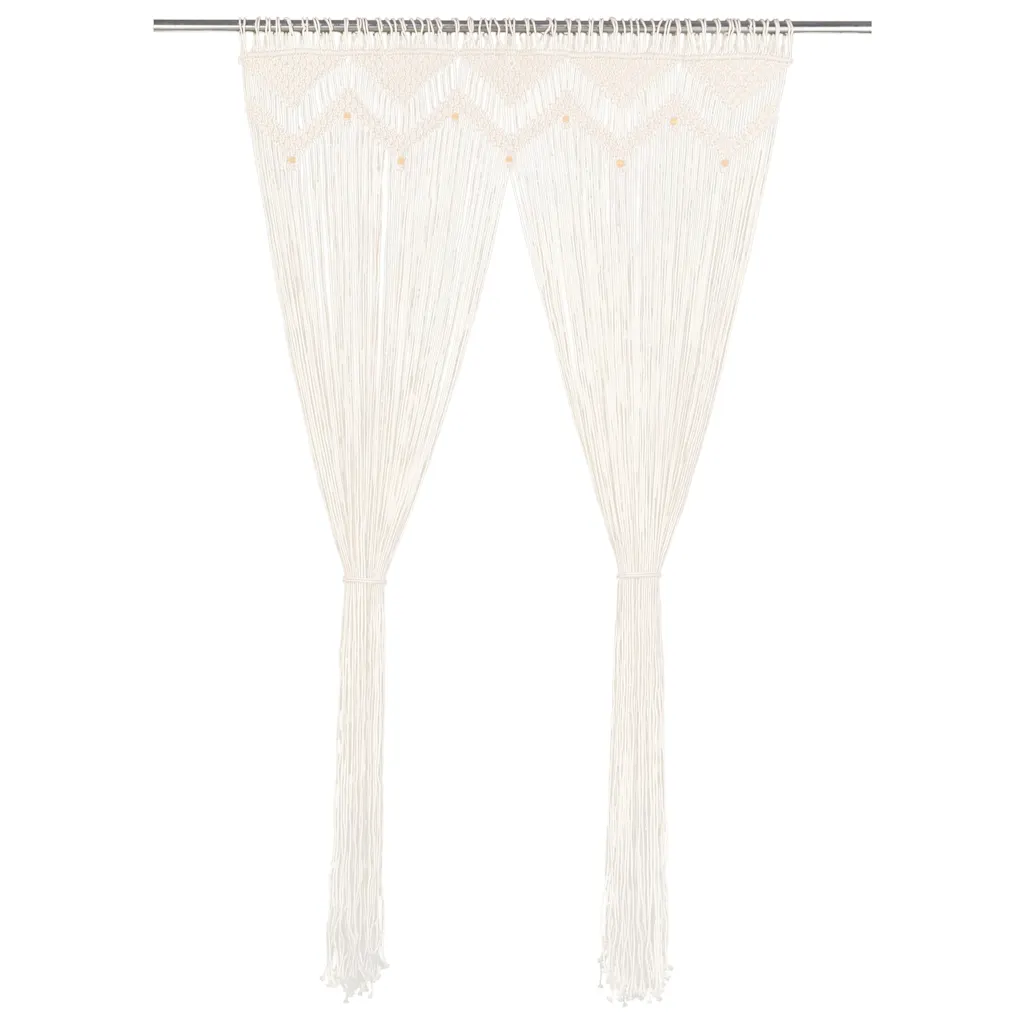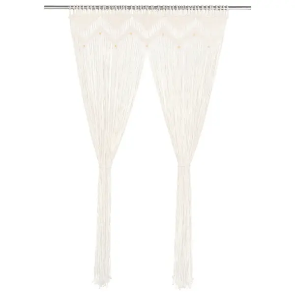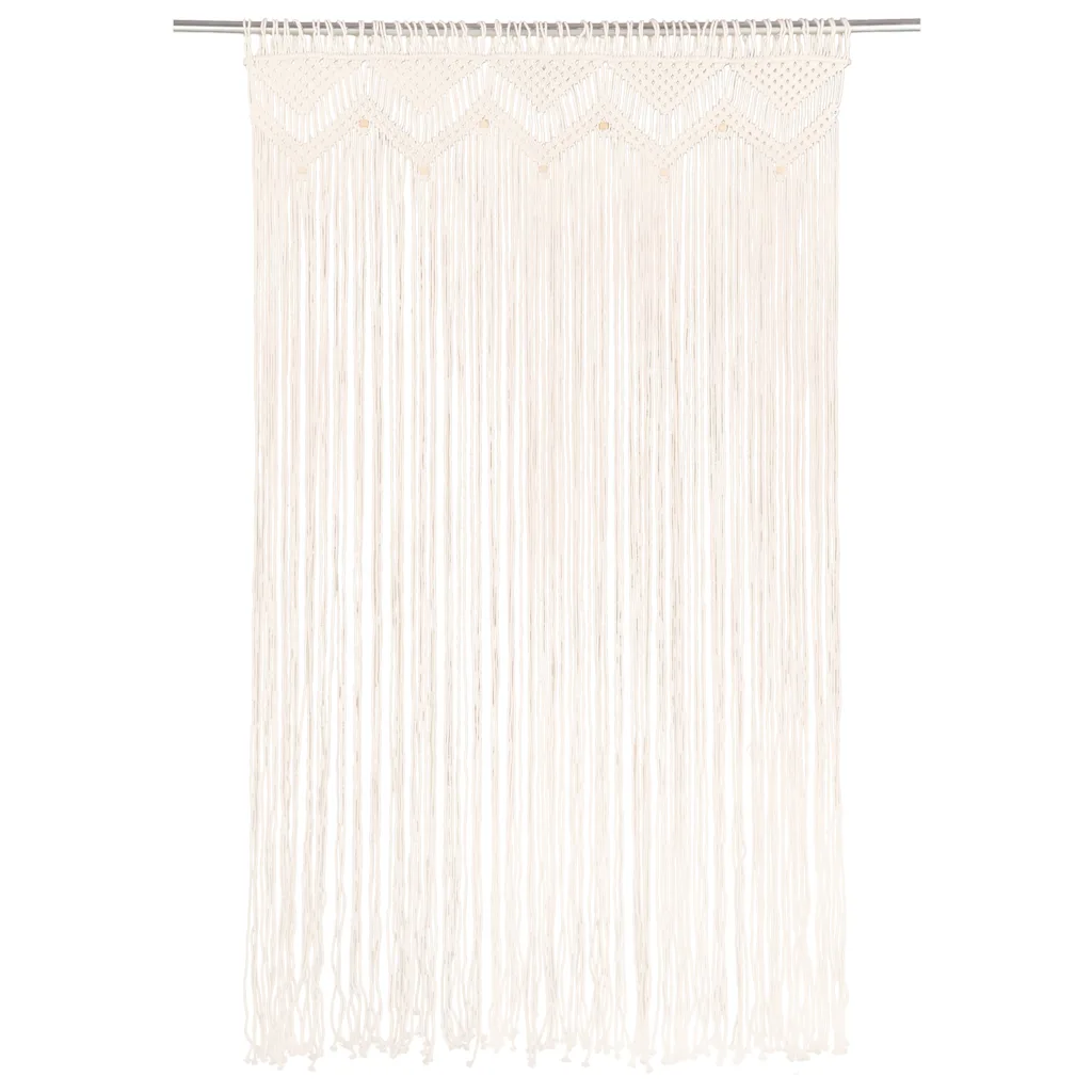 See dekoratiivne makramee kardin on praktiline lahendus ukse- ja aknaavade katmiseks ning ruumide visuaalseks eraldamiseks. Kreemjasvalge puuvillane kardin sobib kasutada uksekardina, aknakardina, ruumijagaja või poeakna kaunistuse taustana, lisades interjöörile pehme ja õhulise ilme. Tänu mõõdule 140 x 240 cm saab kardinat kasutada suuremates avades või vajadusel väiksemaks lõigata.