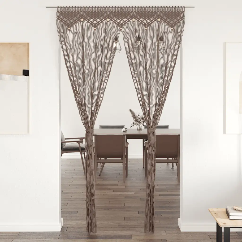 See dekoratiivne makrameekardin on lihtne viis lisada interjööri tekstuuri ja pehmet eraldust. Ukse- ja aknakardinana sobib see hästi nii elutuppa, esikusse kui ka söögialale, luues õhulise piiri eri tsoonide vahel. Käsitsi valmistatud puuvilla-polüestrisegust kardin toob ruumi naturaalse ilme ja hubase meeleolu.