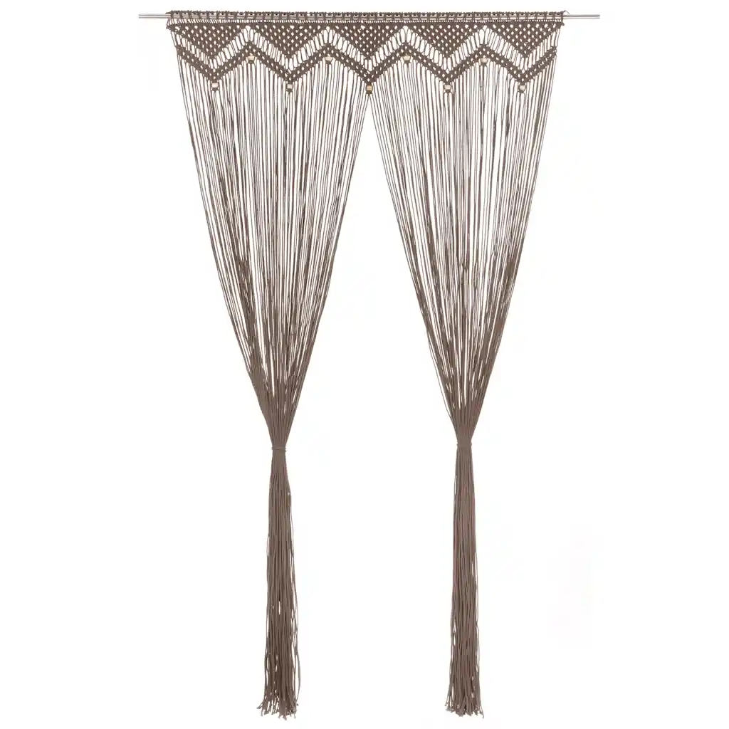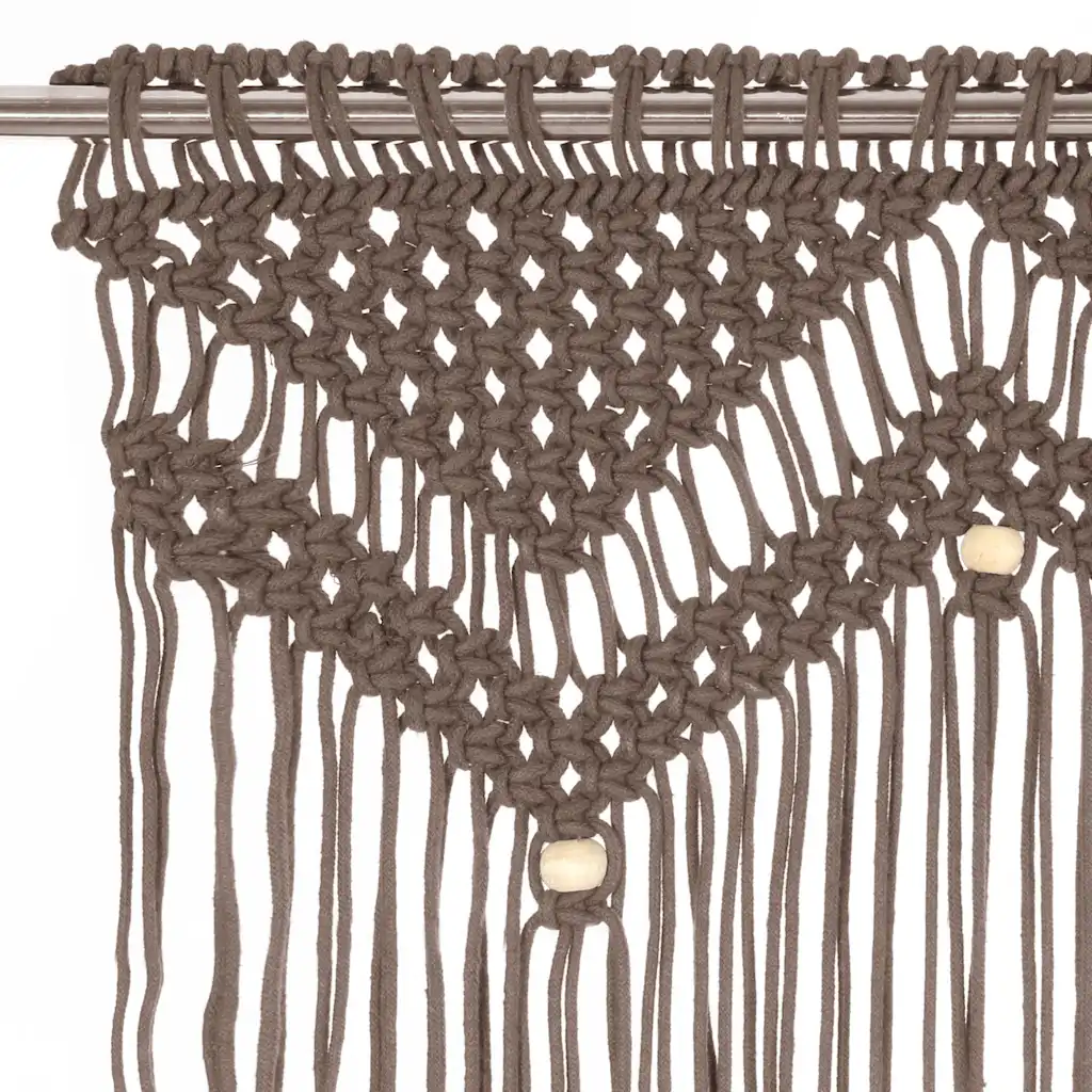 Komplektis on üks pruunikashall makrameekardin mõõtudega 140 x 240 cm. Kardinapuu ei kuulu komplekti.