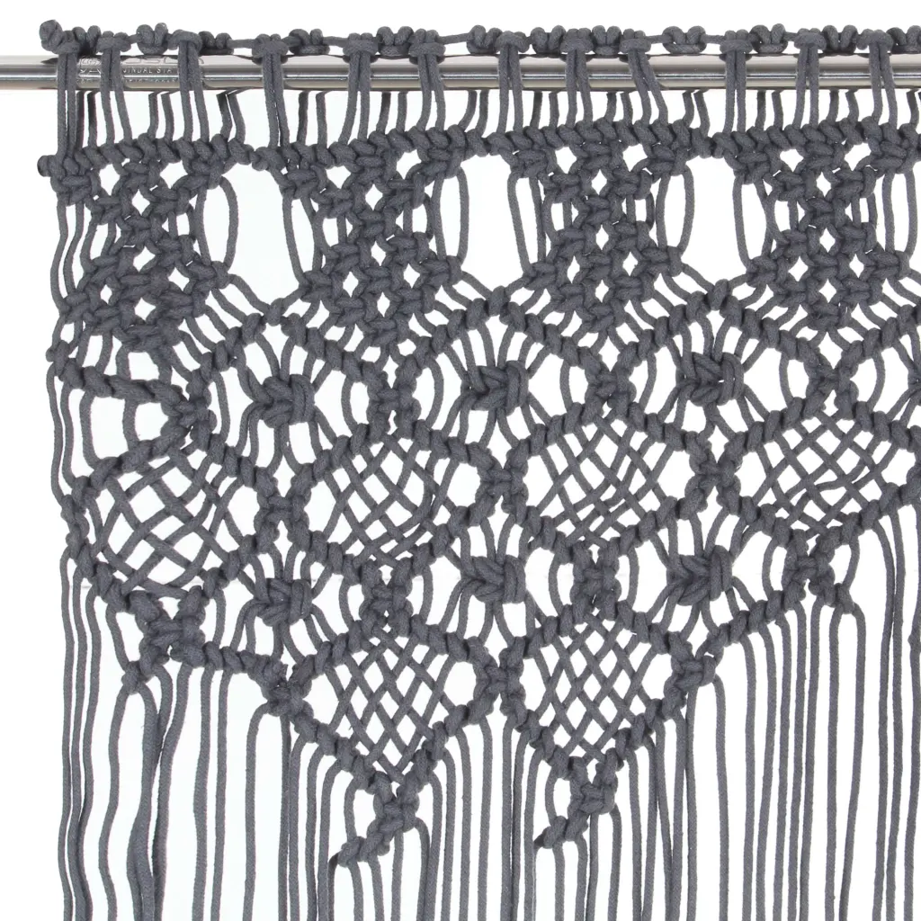 Antratsiithall toon ja käsitsi sõlmitud makrameemuster sobituvad erinevate sisekujundustega, lisades ruumile dekoratiivse ja samas funktsionaalse aktsendi. Puuvillasegust valmistatud, pestav ja vajadusel mõõtu lõigatav kardin on praktiline lahendus nii koju kui ka äripindadele, kus on soov luua kerget visuaalset eraldust või dekoratiivset tausta.
