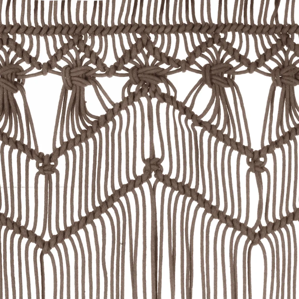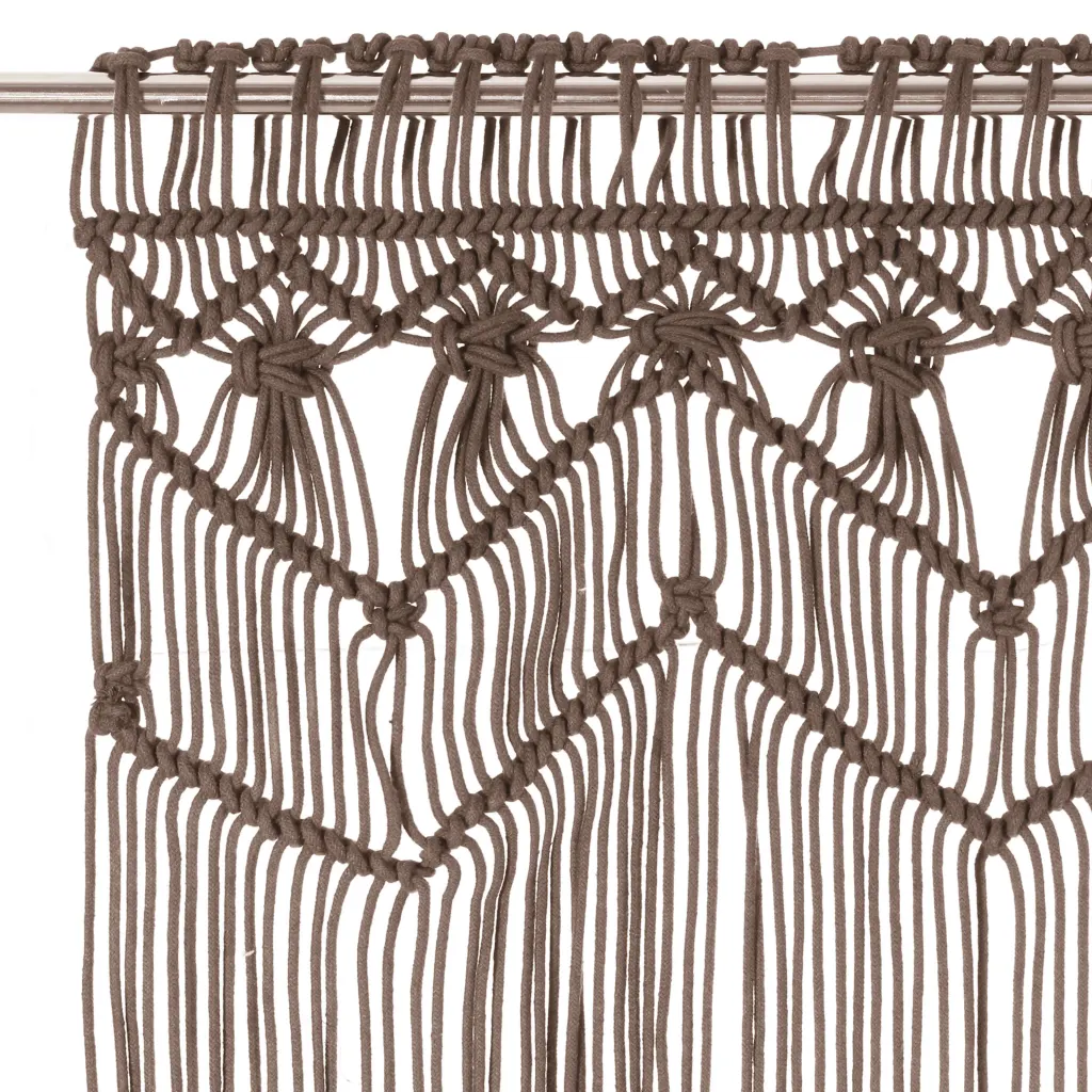 See dekoratiivne makrameekardin on praktiline lahendus ukse- ja aknaavade katmiseks ning ruumi visuaalseks jaotamiseks. Pruunikashall toon sobitub hõlpsasti erinevate sisekujundustega, lisades interjöörile õhulise ja tekstiilse struktuuri. Tänu mõõdule 140 x 240 cm katab kardin suurema avause ning sobib hästi nii koju kui ka poeakna taustaks.