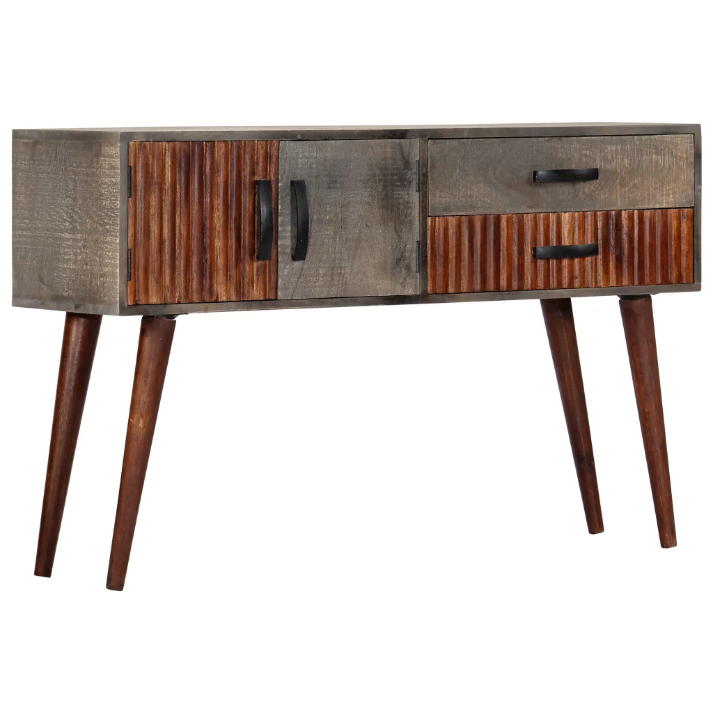 Mangopuidust konsoollaud ühendab dekoratiivse välimuse ja praktilise hoiuruumi. Halli ja pruuni tooniga kapp sobitub erinevate sisustusstiilidega ning tugevast mangopuidust konstruktsioon tagab stabiilsuse ja vastupidavuse igapäevases kasutuses.