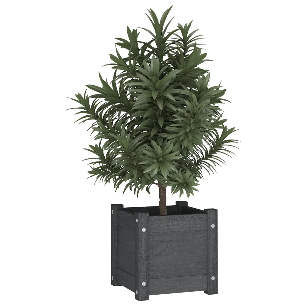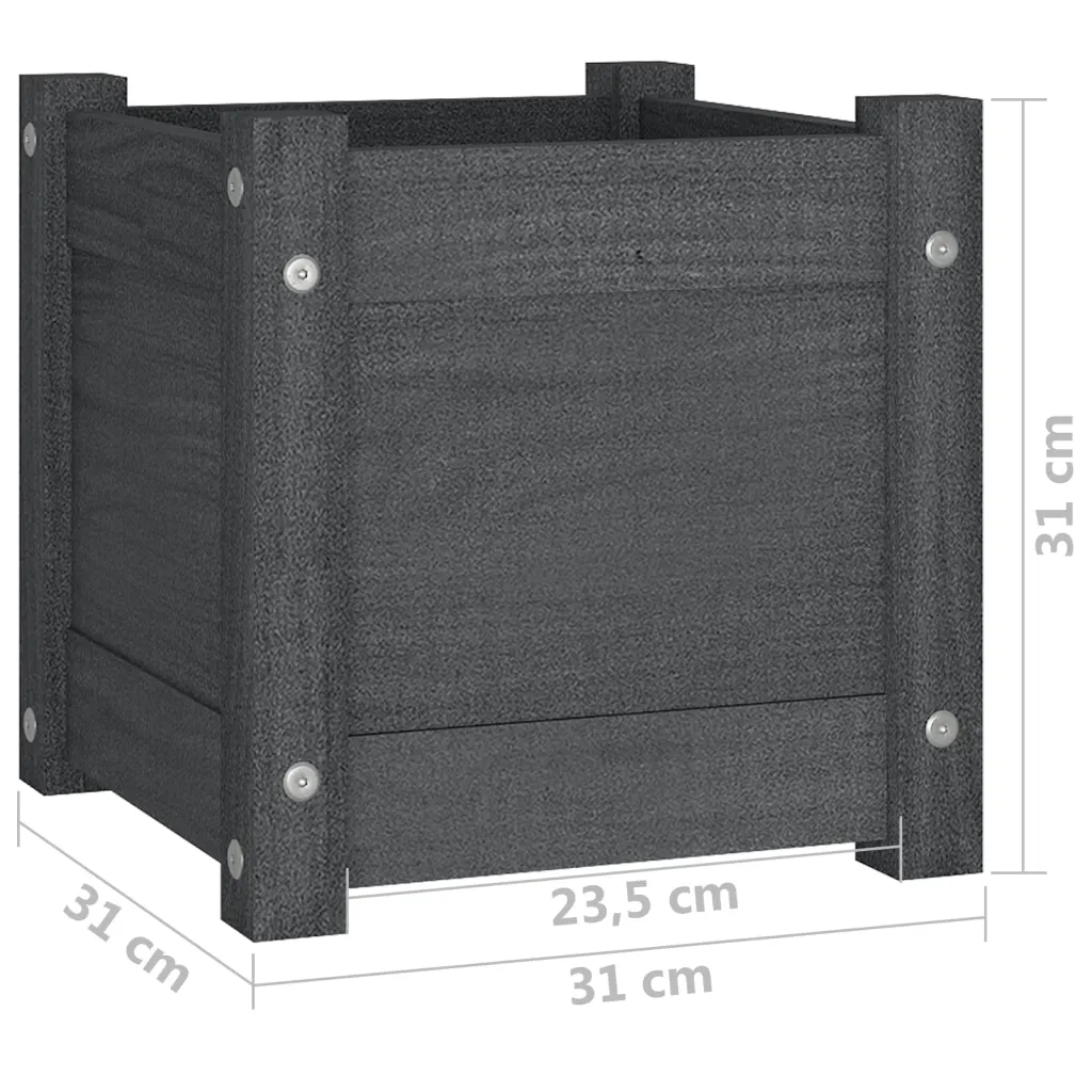 - 2 x taimekasti halli värvi männipuidust, mõõtudega 31 x 31 x 31 cm (L x S x K)