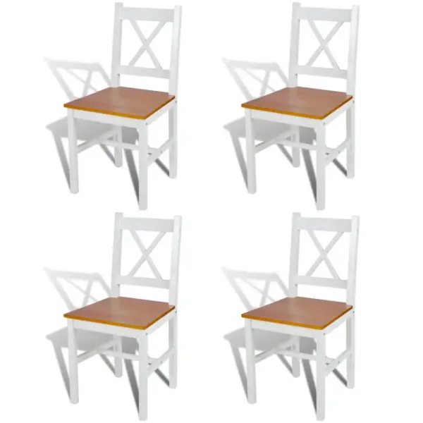 See nelja männipuidust söögitooli komplekt on loodud igapäevaseks kasutuseks köögis või söögitoas, pakkudes stabiilset ja mugavat istumisvõimalust kogu perele. Valge ja naturaalne viimistlus sobitub kergesti erinevate söögilaudade ja sisustusstiilidega, luues helge ja tasakaalustatud ilme. Tänu siledale, värvitud pinnale on toolid lihtsad hooldada ja puhastada, mistõttu sobivad need hästi ka aktiivse kasutusega kodudesse.