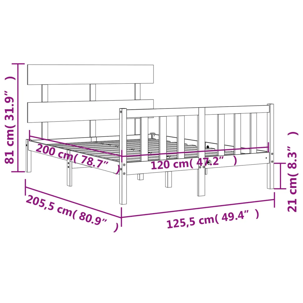 • Männipuidust voodiraam mõõduga 120 x 200 cm koos peatsi ja jalutsiga