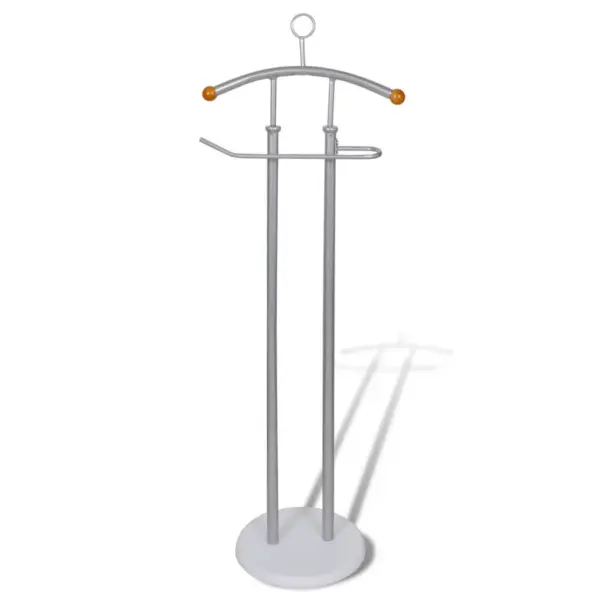 See hõbehall mantli ja särgi hoidja on praktiline lahendus rõivaste ja aksessuaaride korrastatud hoiustamiseks. Tugev metallraam ja raske MDF-alus tagavad hea stabiilsuse, et saaksite hoida oma riided kortsudeta ja hästi organiseeritult just seal, kus vaja.