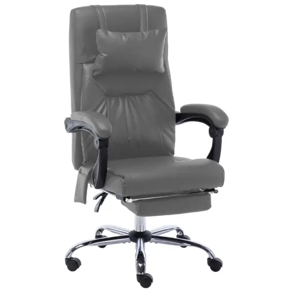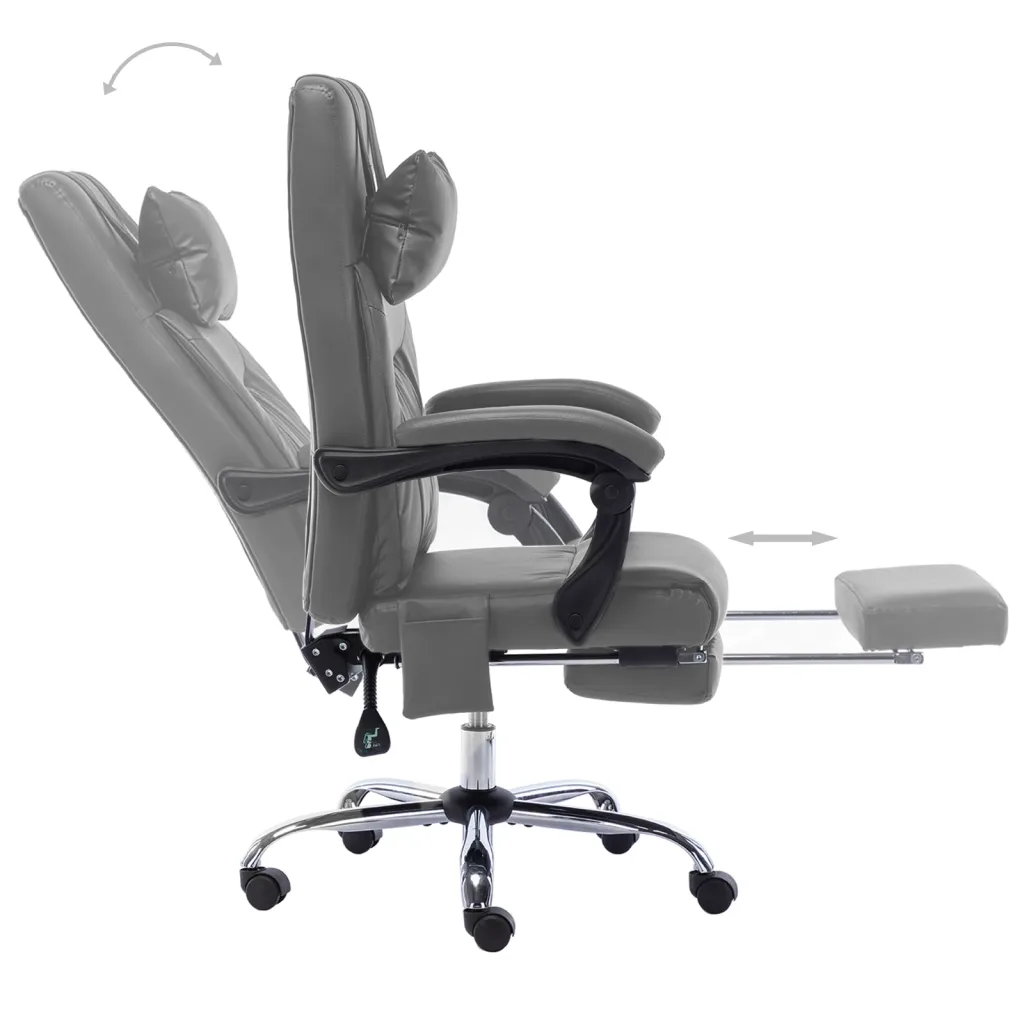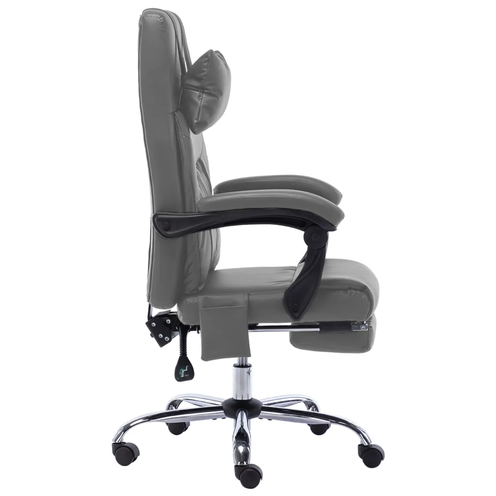 See massaažifunktsiooniga lamav kontoritool on loodud pakkuma tuge ja mugavust kogu tööpäeva vältel. Kõrge seljatugi, paks polsterdus, kaelapadi ja väljatõmmatav jalatugi aitavad lõdvestada keha ning leida sobiva töö- või puhkeasendi. Antratsiithallist kunstnahast katte ja metallraamiga tool sobitub kaasaegsesse kontorisse ning on samas lihtne hooldada.