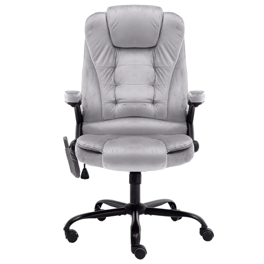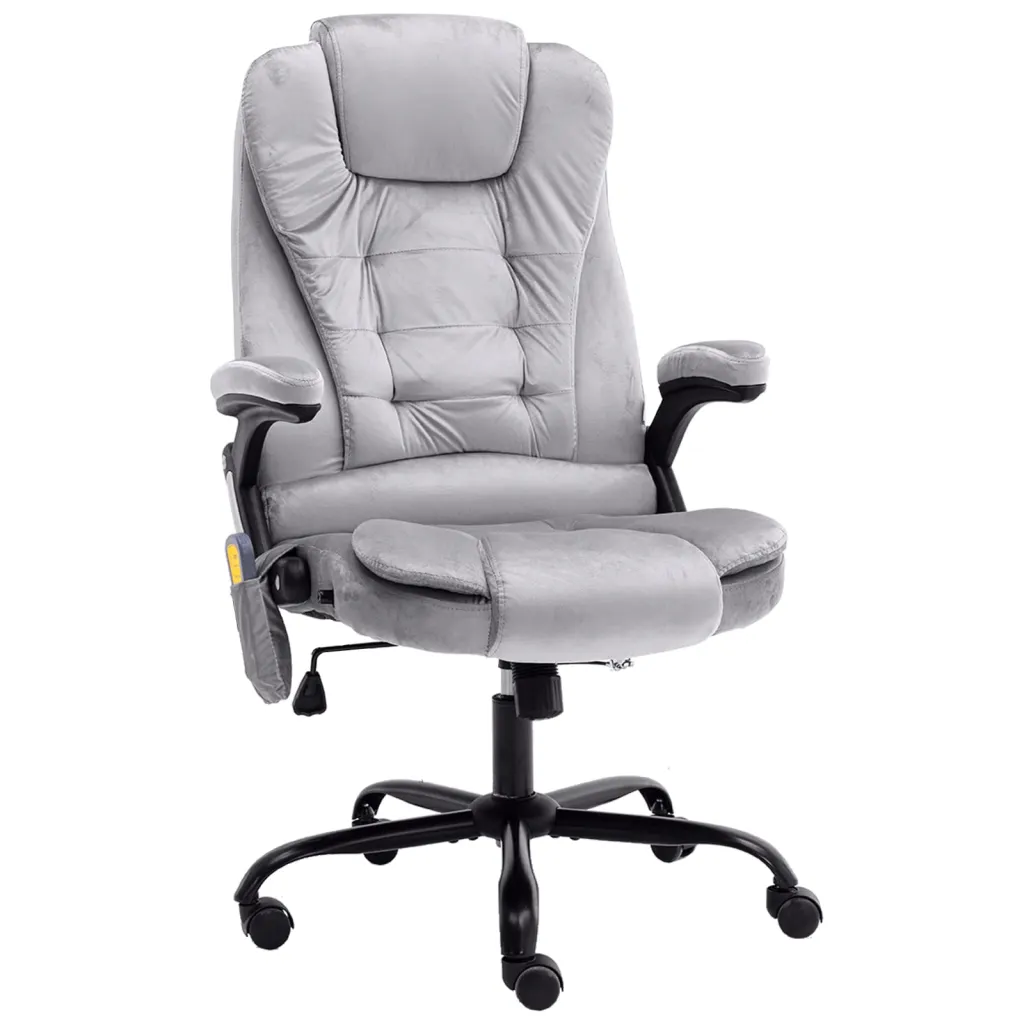 See helehallist sametist massaažiga kontoritool on loodud pikaks istumiseks, pakkudes ergonoomilist tuge ja lõõgastust tööpäeva jooksul. Kõrge seljatugi, kumerad käetoed ja tihkelt polsterdatud iste aitavad hoida selga ning õlgu mugavas asendis, samal ajal kui lamamis- ja massaažifunktsioon võimaldavad teha lõõgastavaid pause otse töölaua juures.